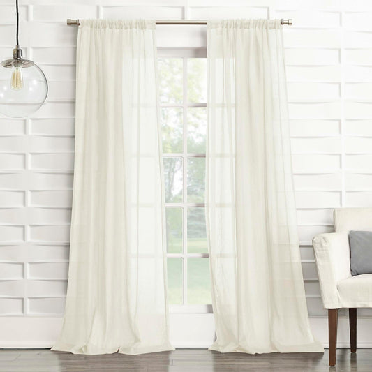 No. 918 Tayla Crushed Texture Semi-Sheer Rod Pocket Curtain Panel 50x108 Cream