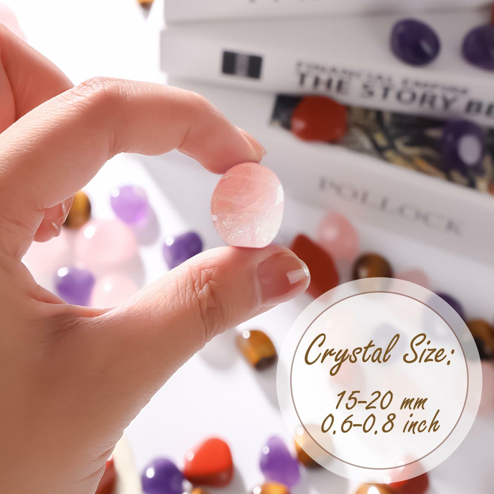 - SPECIFICATION:The crystals are tumbled and polished to a smooth surface and have a variety of shapes and sizes.They are ideal for placing on the crystal grids cards or using as thumb stones,palm stones or pocket stones.The crystals are about 0.5 inches in size.