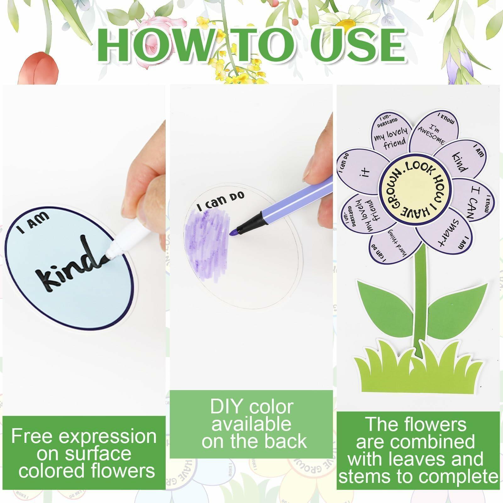 - DIY FLOWER WRITING: The double-sided design with large, inspirational colorful flowers on the front and colorable flowers on the back. You need to DIY assemble the petals into a flower plant for writing, it can be used as a message board to write down what you want to express or as a DIY handmade gift for teachers, family, and classmates.