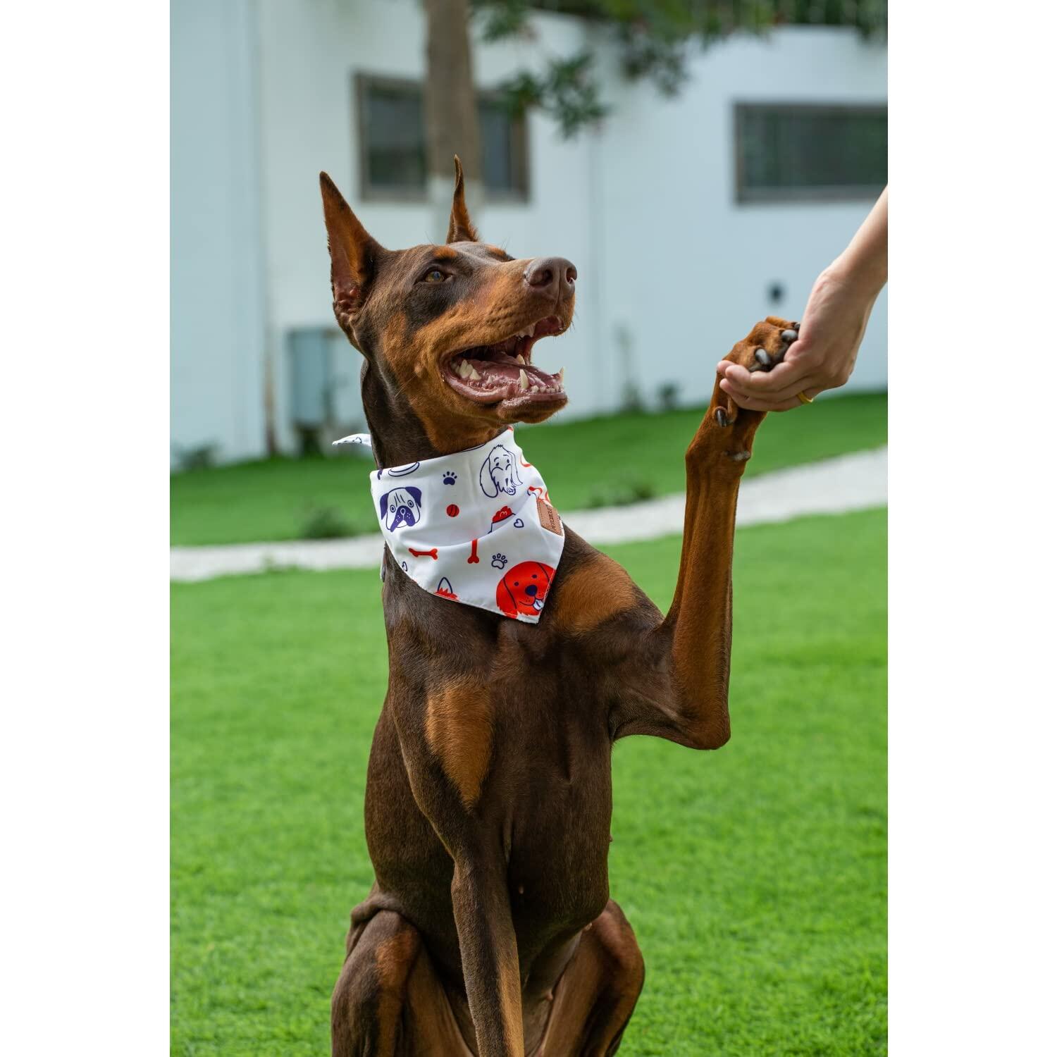 - Come as pre-folded and easy to wear,not only for your dog, share with your friends’ is also a good choice.A bandana needs to be chew resistant, stain resistant, easy to wash, spot clean, and re-use for months on end.