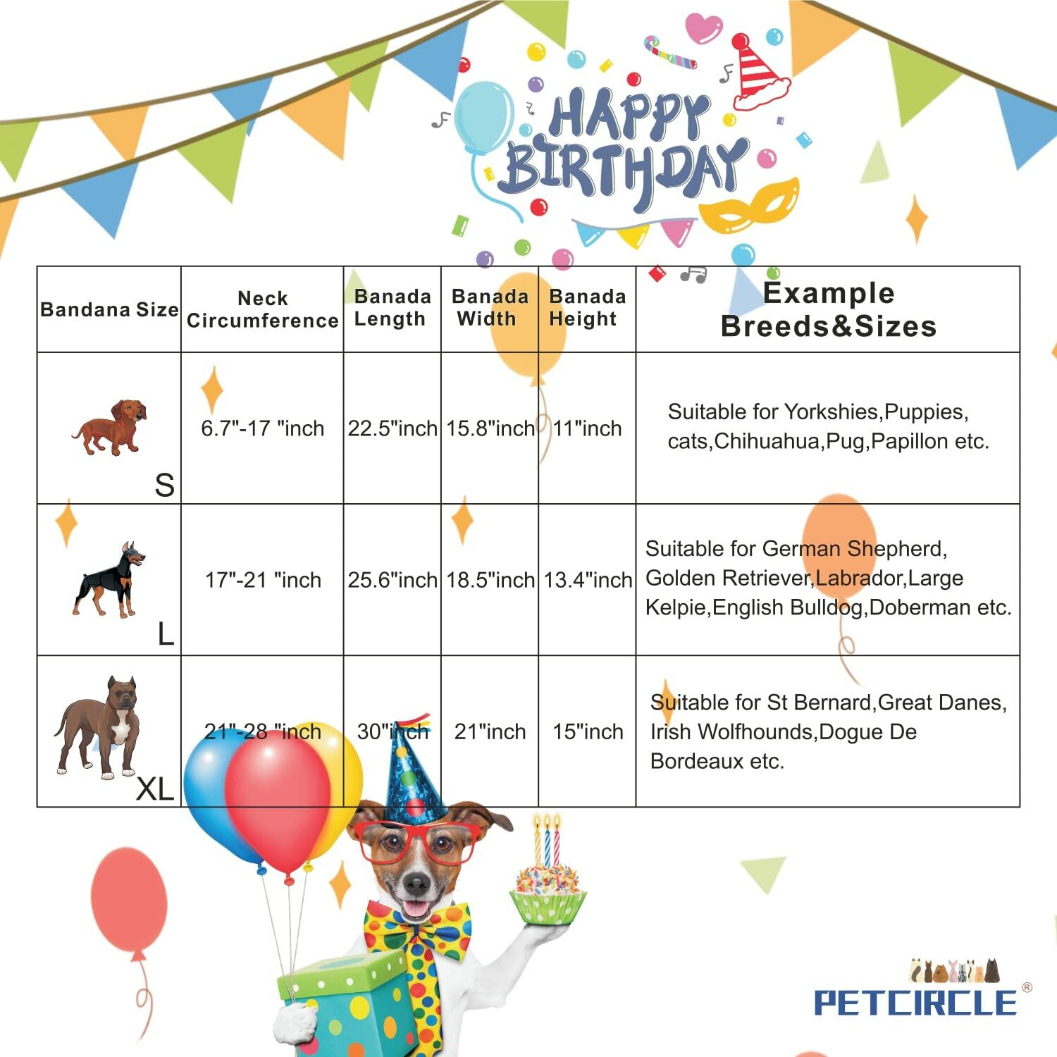 2 Pack Dog Bandanas – White Cute Birthday Pet Scarf for Dogs & Cats, XL