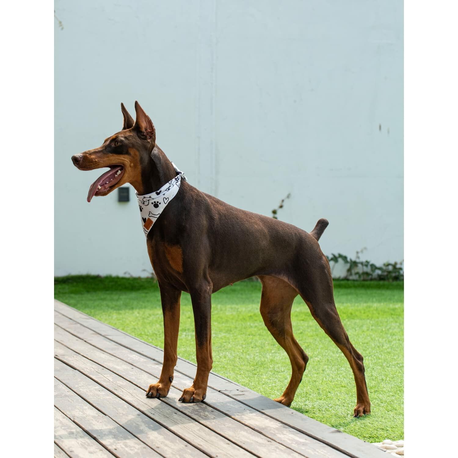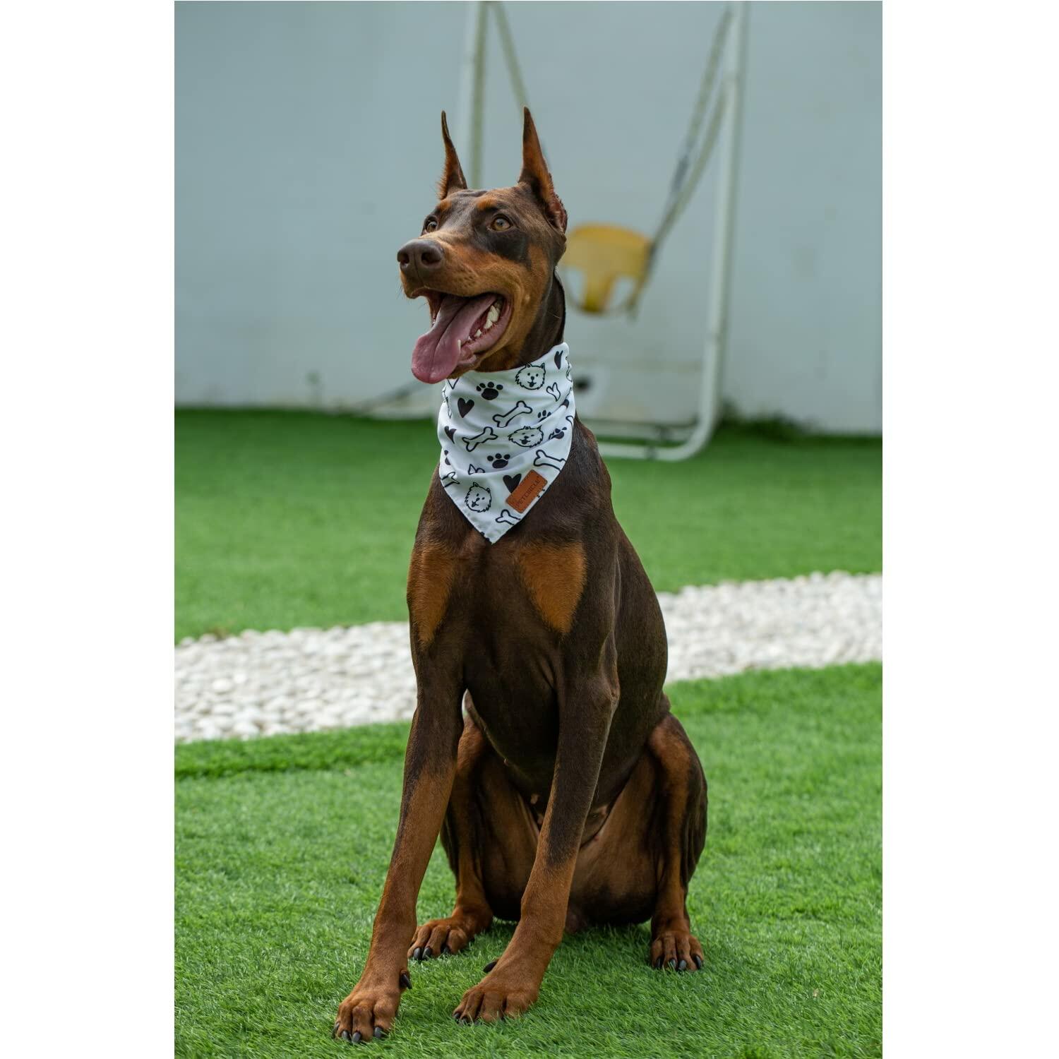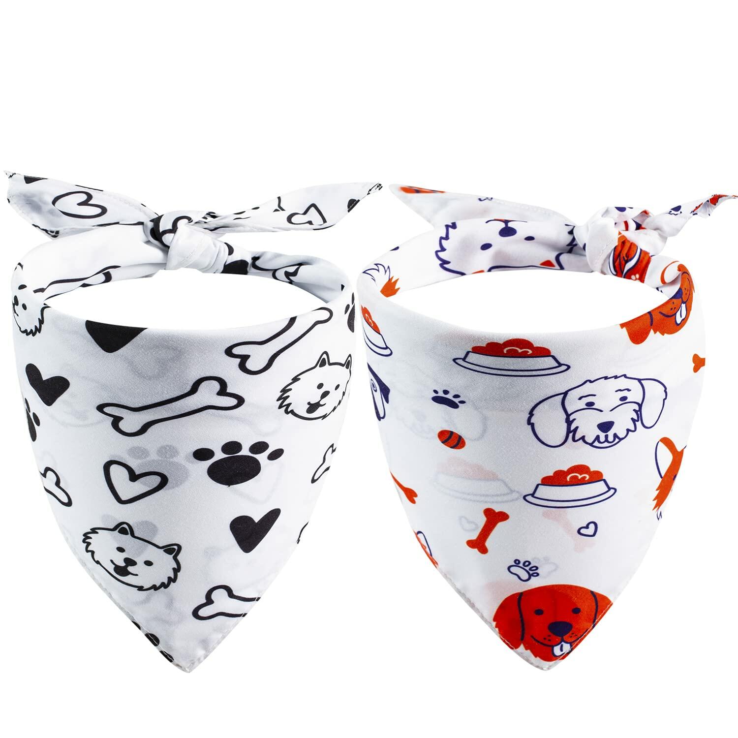 Dog bandanas 2 pack, double Layer Fabric pet scarf durable for dog cat Birthday (White-Cute, X-Large)
