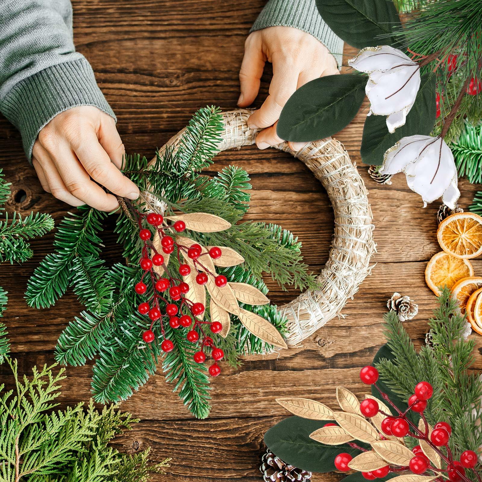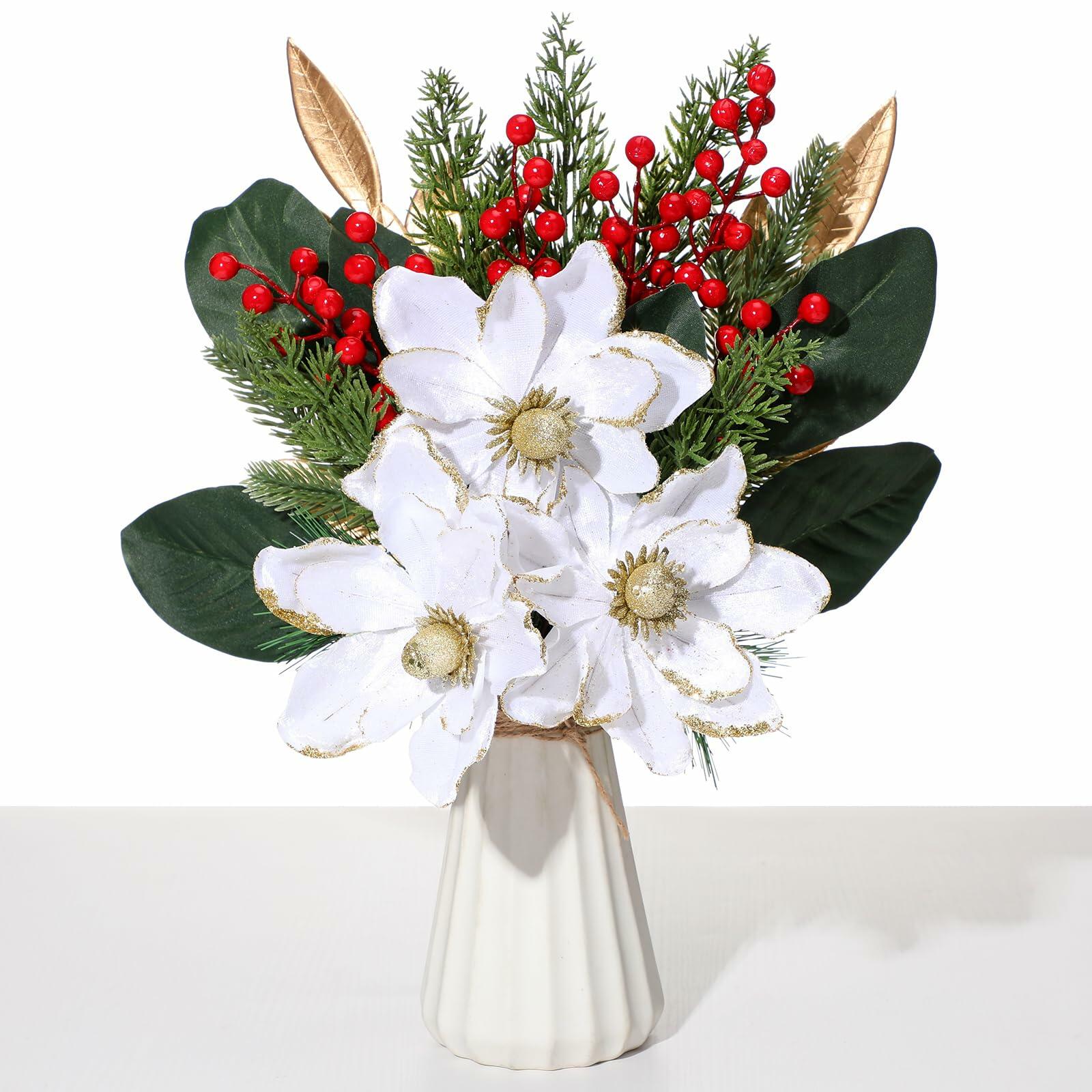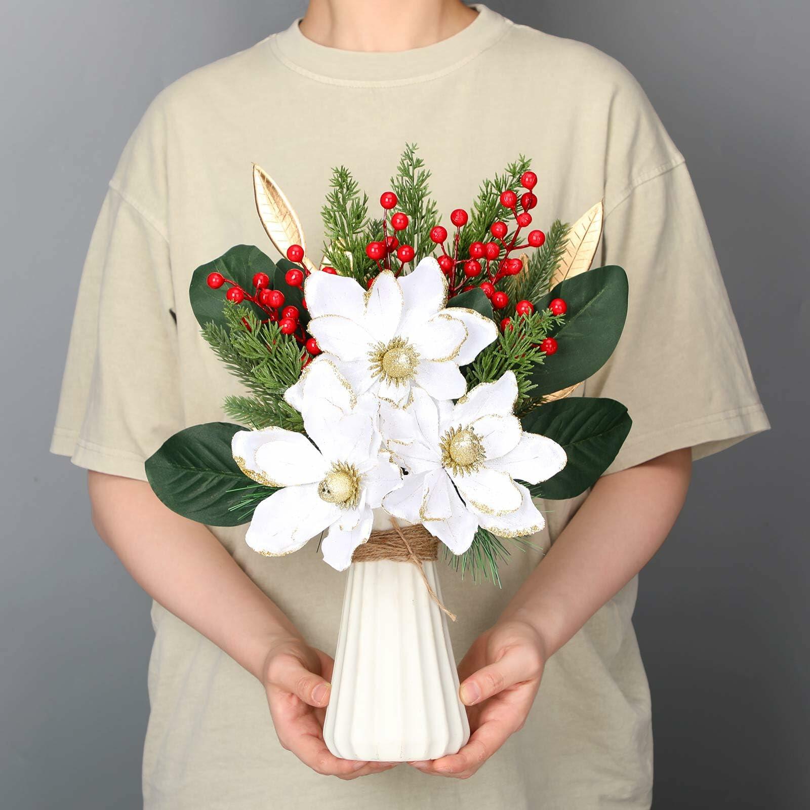 - Rich Content: These Christmas flower selections have 8 different styles, including red berries, green pine branches, golden laurel branches, white magnolias, etc. (vase not included), a total of 24 branches, sufficient supply, various styles enough to meet your decoration needs
