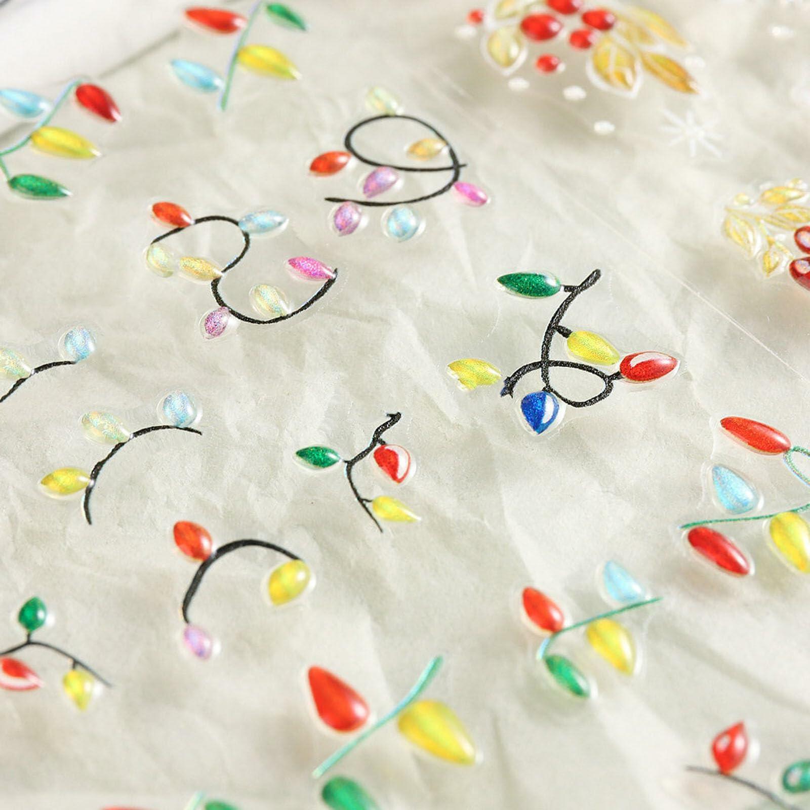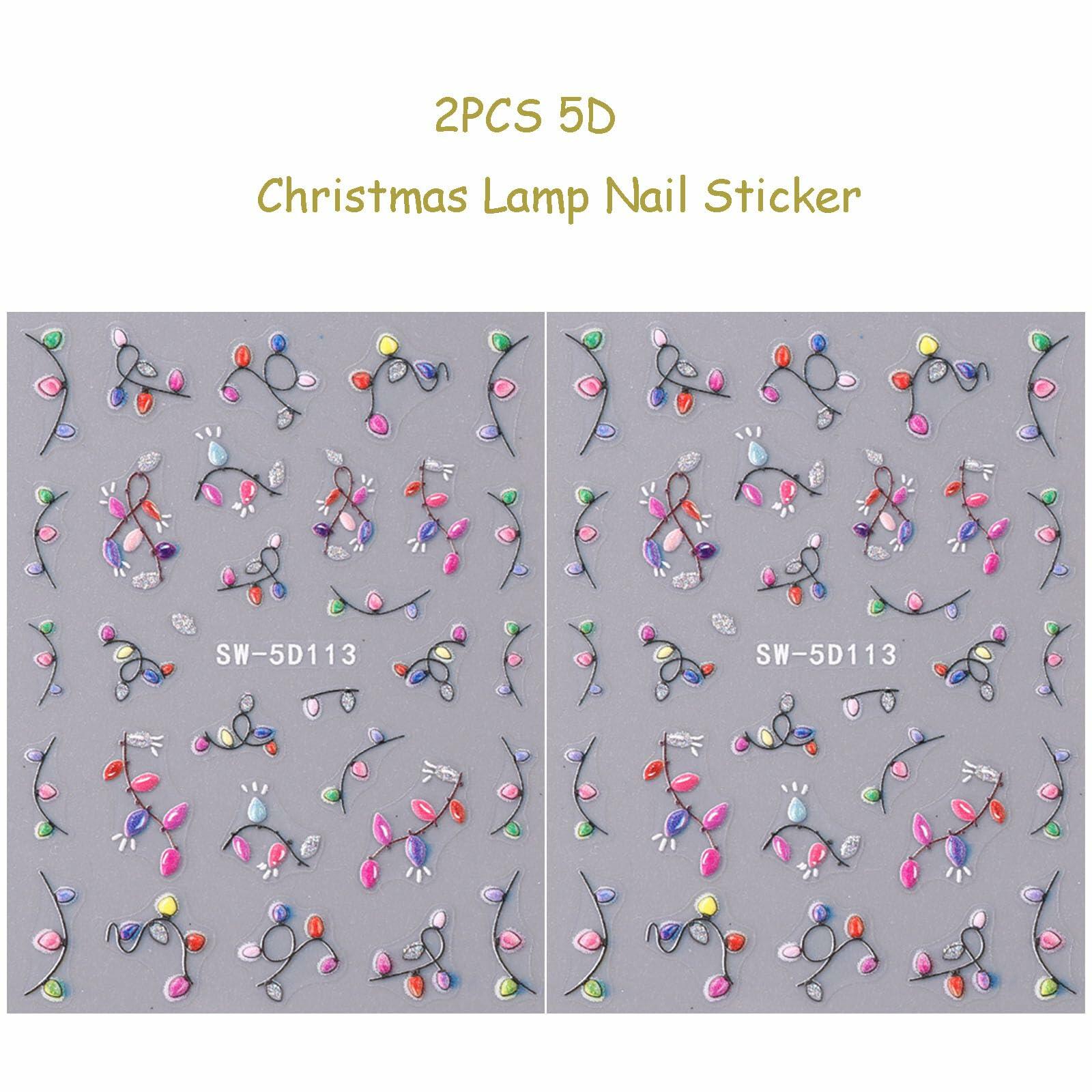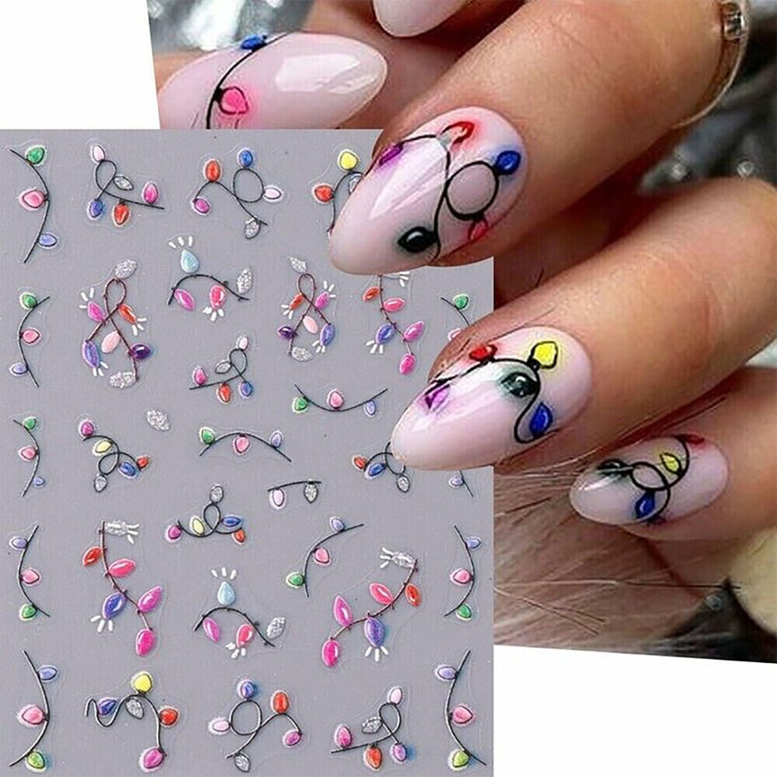 2pcs Christmas Colour Lamp Nail Stickers 5D Embossed Self-Adhesive Decals