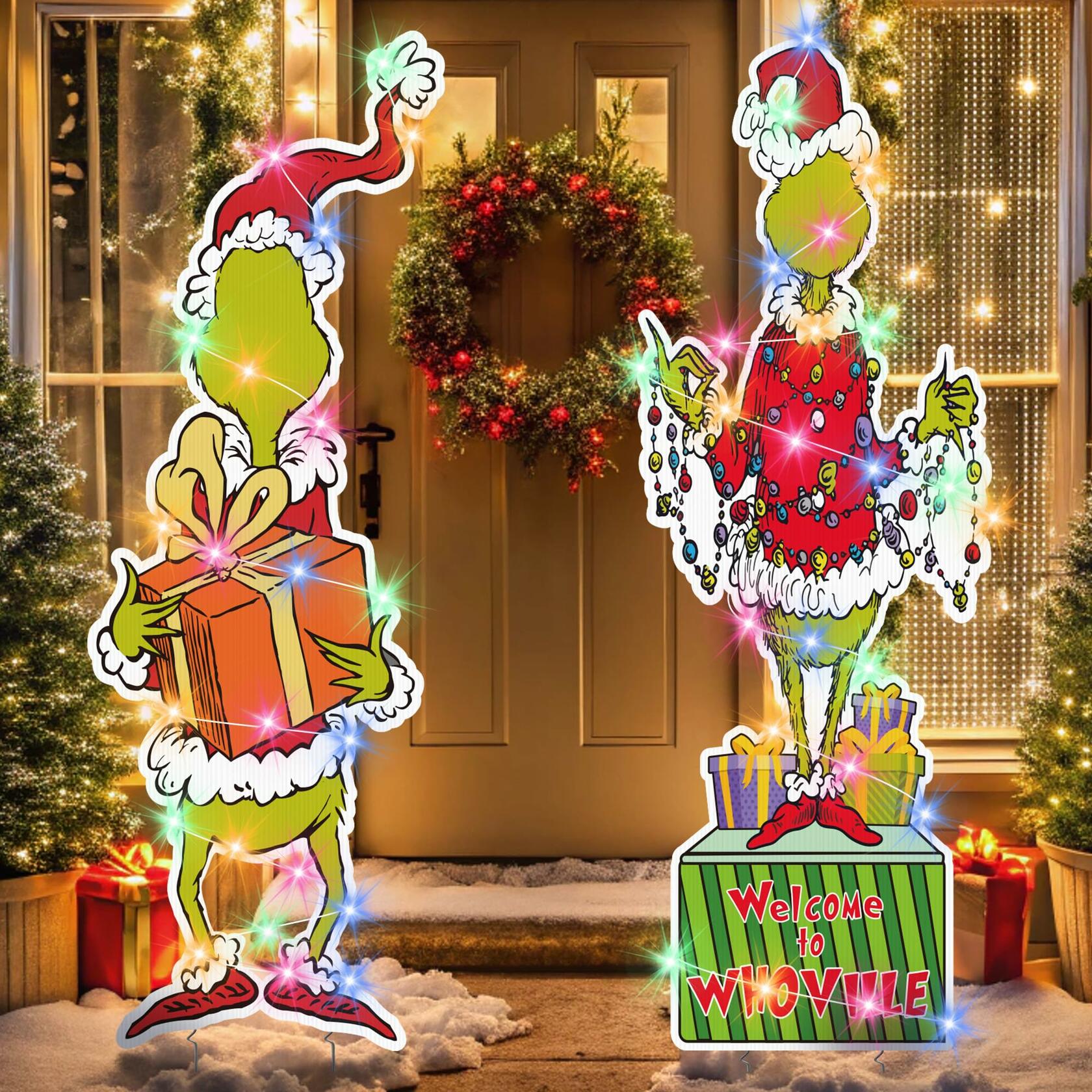 2Pcs Christmas Outdoor Yard Sign with String Light B Style Holiday Decor