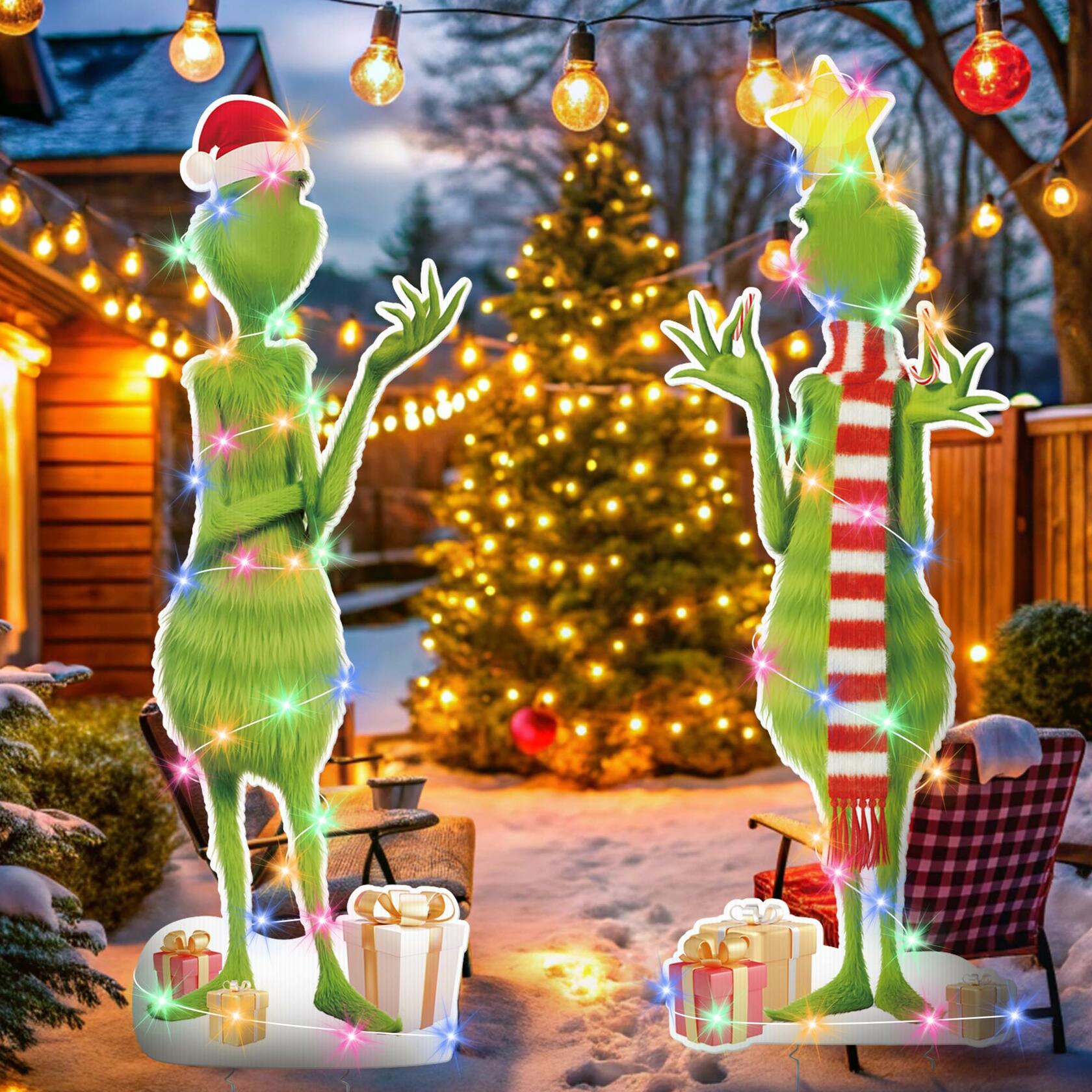 2Pcs Christmas Outdoor Yard Sign with String Light D1 Style Holiday Decor