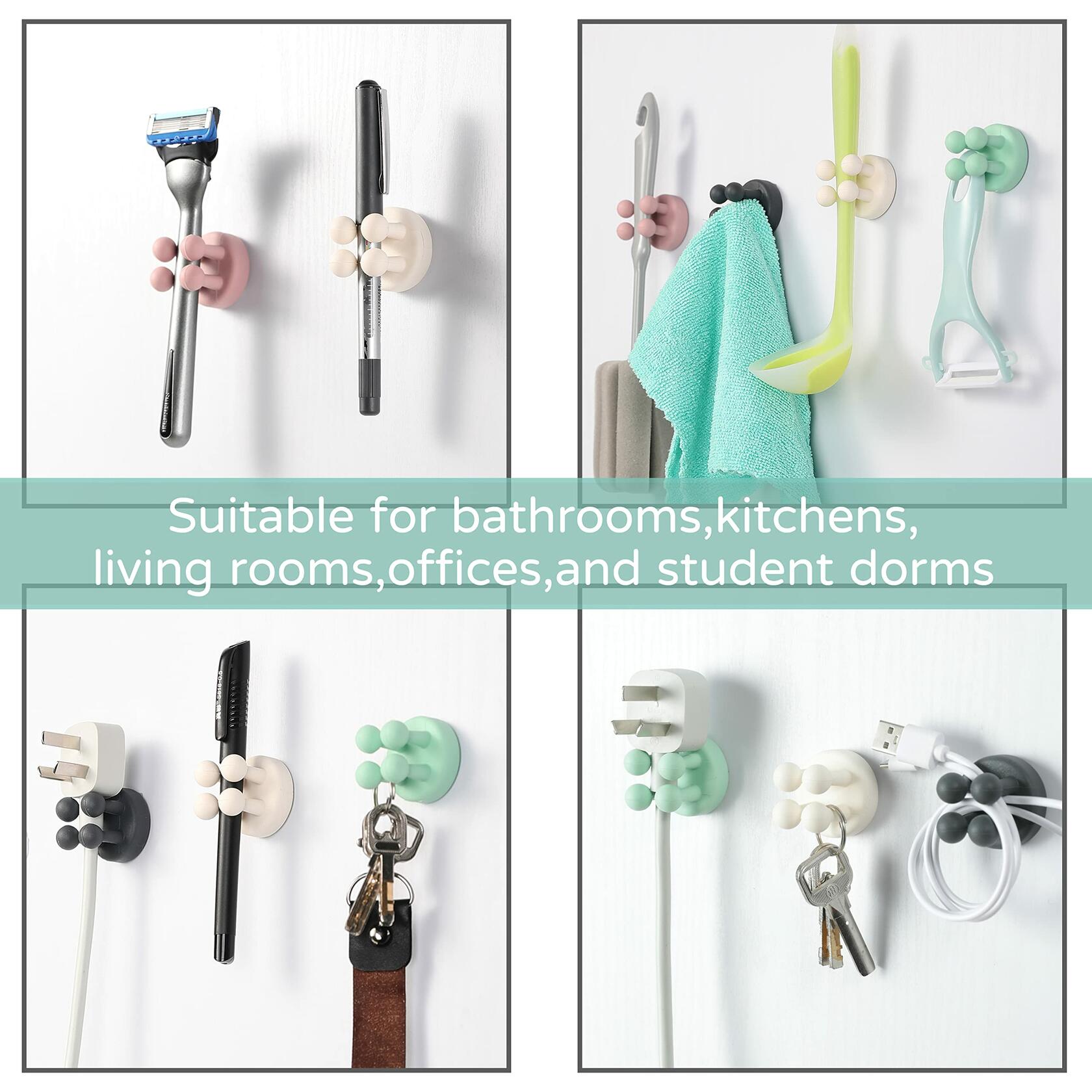 - 【Multi-Function Hook】This wall mounted silica glue hook is ideal for use in bathrooms, kitchens, living rooms, offices, and student dorms. Excellent for hanging toothbrushes, razors, pen,sunglasses, wire plug, keys, stirring spoons and more! Keeping and helping your clutter organized and tidy. effectively solve storage problems, saving space.