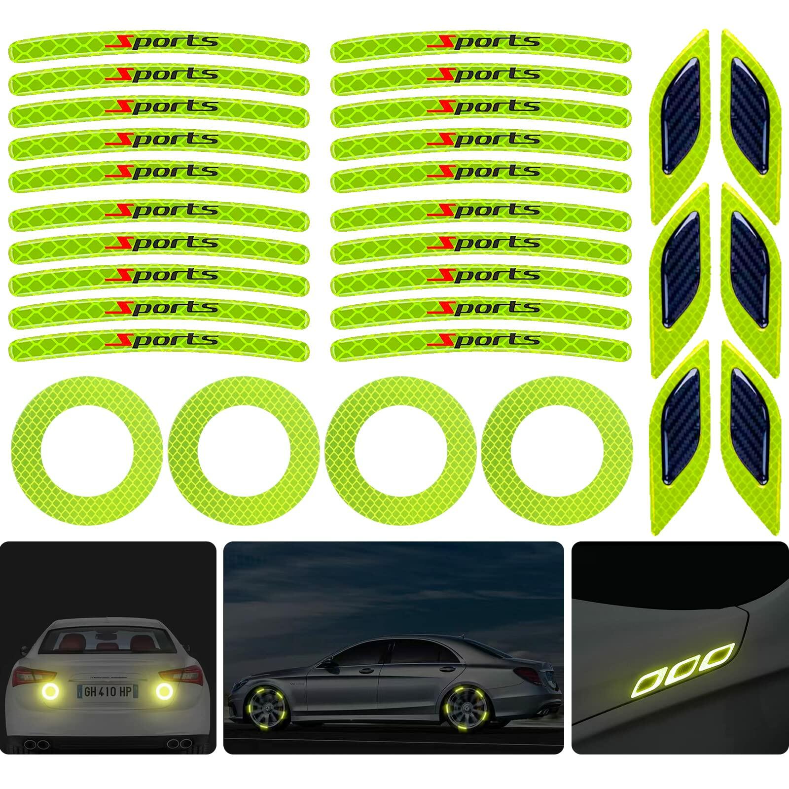 ✔ Package include: 20pcs reflective wheel tire rims stripes ; 4Pcs circle reflective stickers, 6pcs Fender Reflective Stickers