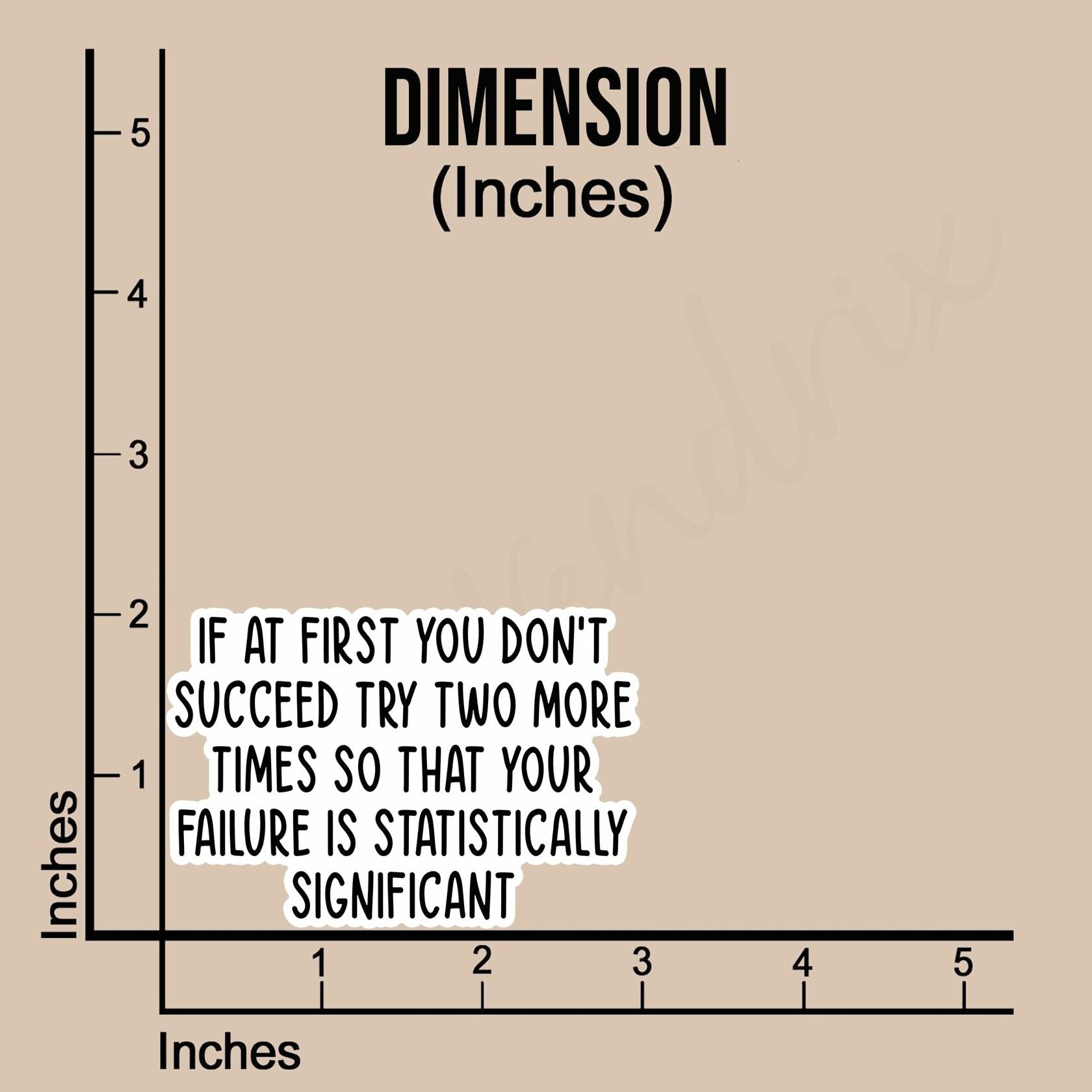 This humorous sticker is a perfect addition to your laptop, water bottle, or any other surface you want to add a touch of wit. The bold black text on a crisp white background reads, "If at first you don't succeed, try two more times so that your failure is statistically significant." This tongue-in-cheek phrase offers a playful spin on the classic motivational quote, encouraging persistence while acknowledging the reality of failure. Whether you're a data enthusiast, a scientist, or simply someone who appreciates a good laugh, this sticker is sure to bring a smile to your face and spark conversations with those around you. Measuring approximately 3 x 2 inches, it's the ideal size for adding a touch of personality without being too obtrusive.