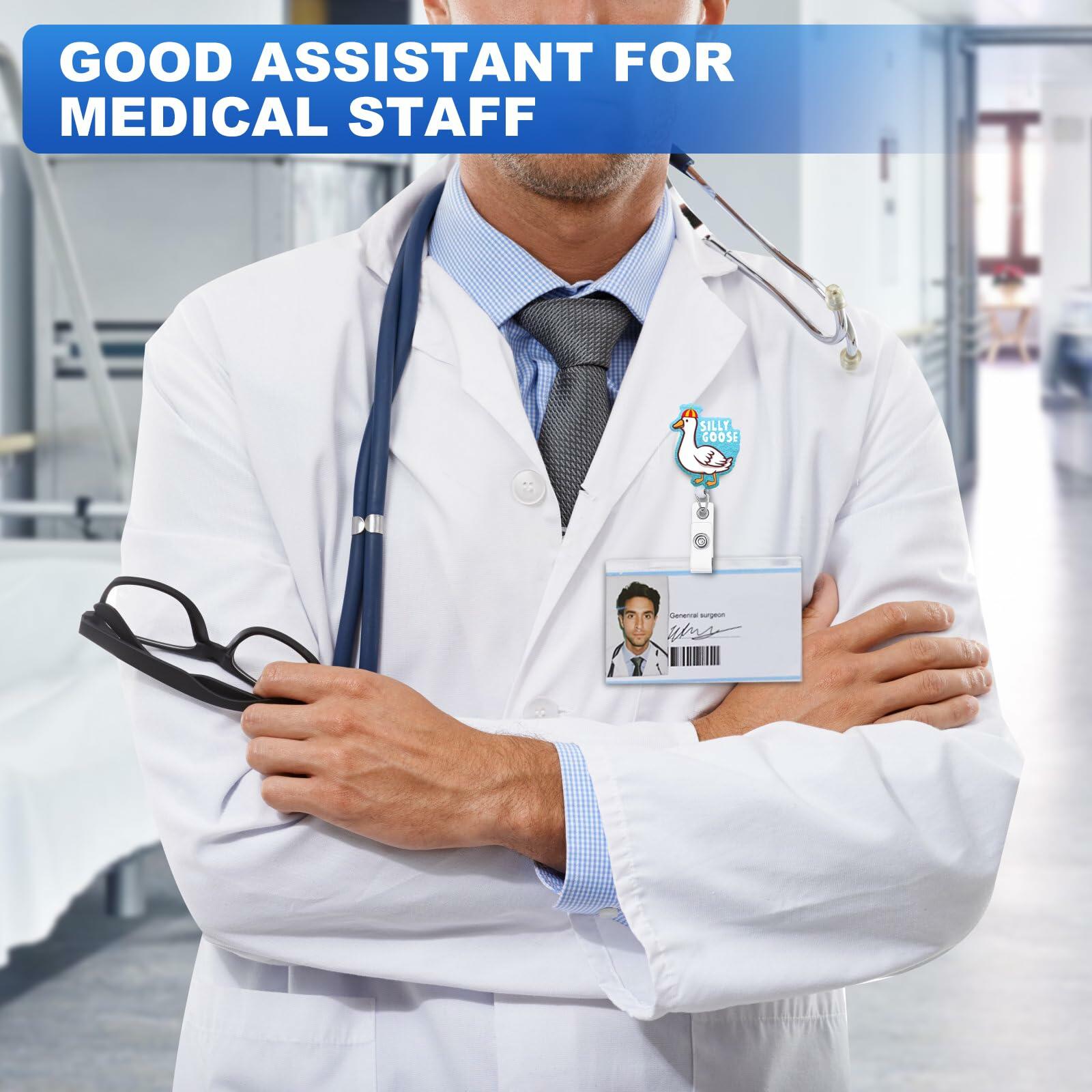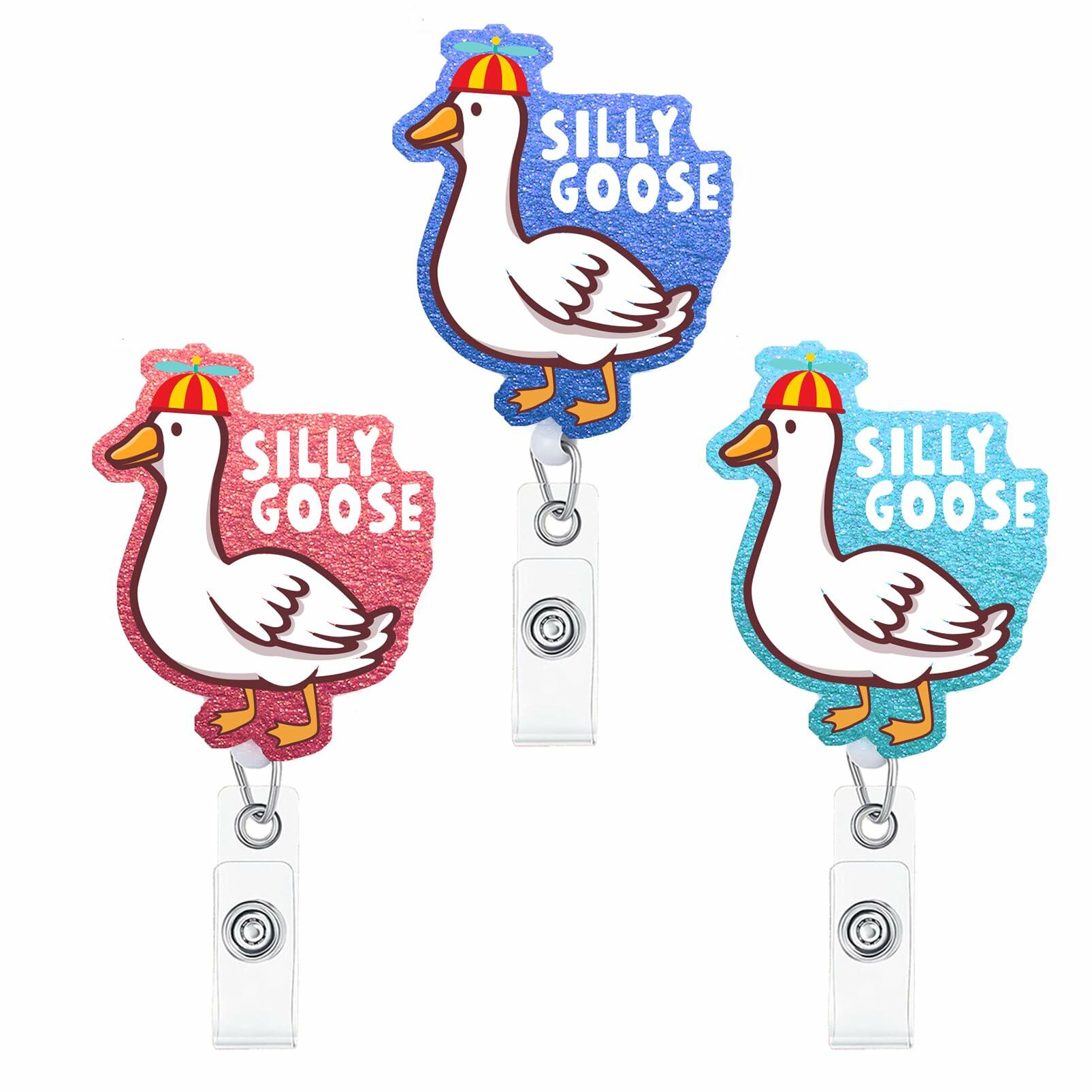 3PCS Silly Goose Glitter Retractable Badge Reels ID Holder with Clip for Nurse