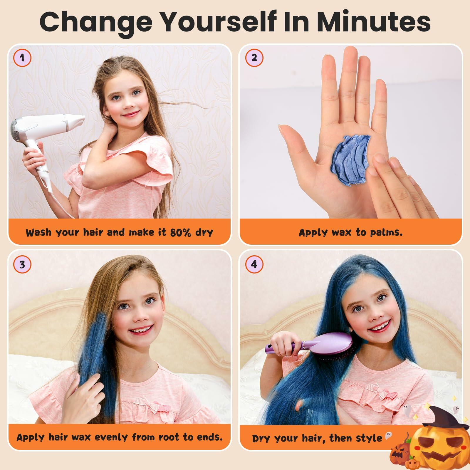 - Hair Color Present for Children: This temporary hair color wax is easy to use, making it ideal for kids, girls, boys, and teenagers. Children can use it to DIY their hair color and hairstyle safely. They can create their favorite hairstyle for their hair crazy day or Halloween party. Our colored hair wax transforms your look, offering a fun and temporary hair dyeing experience