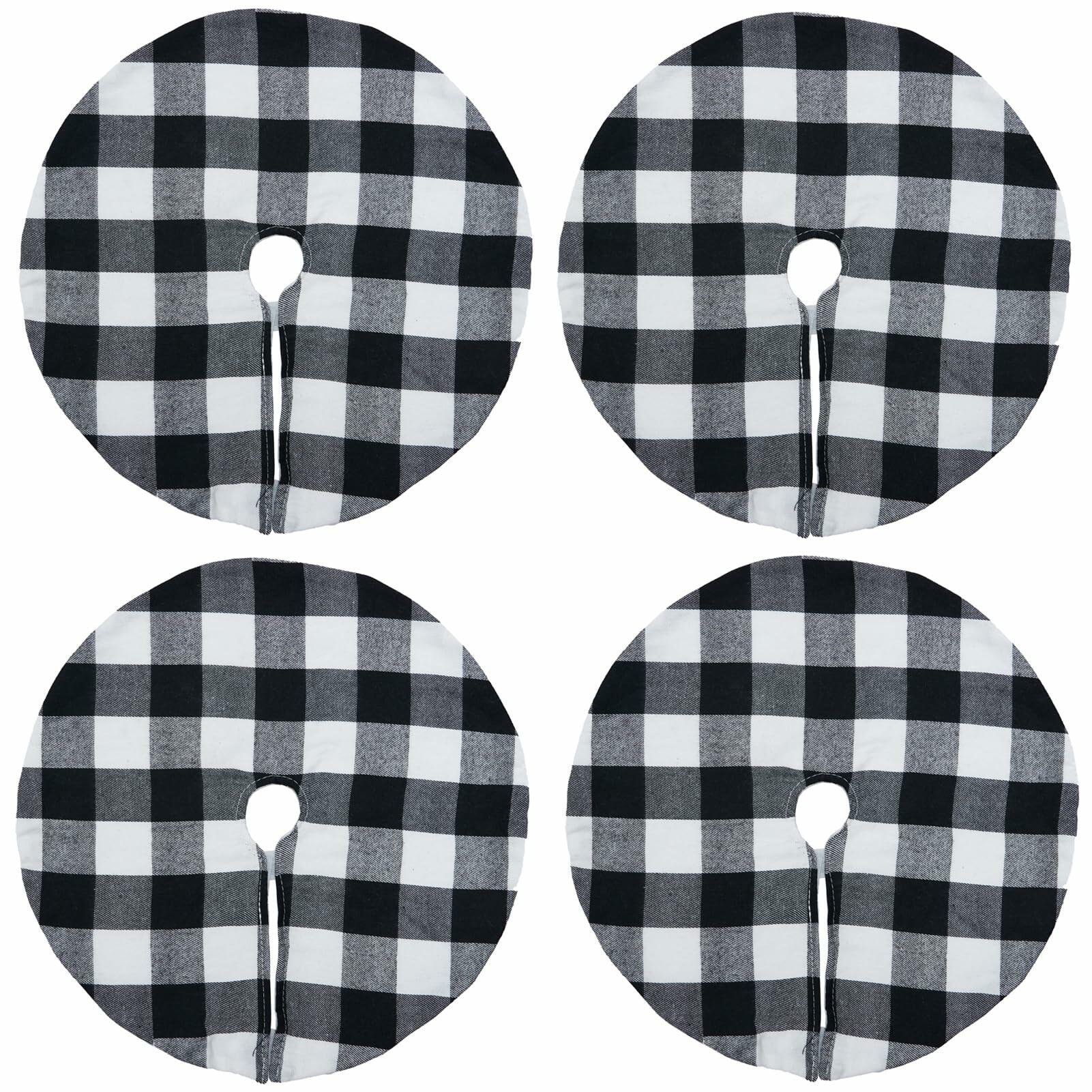 4 Pack Christmas Tree Skirt 15" Black White Buffalo Plaid Holiday Decor