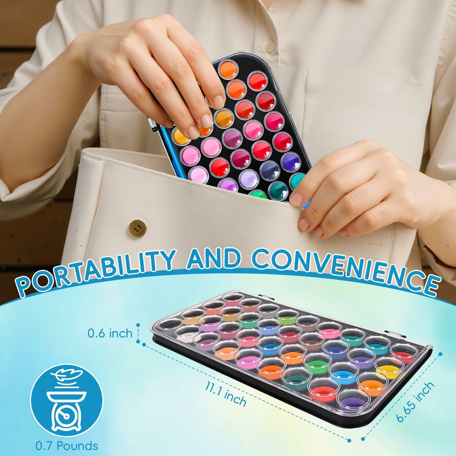 - Premium Quality & User-Friendly---Designed for a superior painting experience. The solid pans are long-lasting and less messy than tube paints. The sturdy, reusable plastic case acts as a built-in mixing palette. Our watercolors are smooth, easy to layer, and washable from skin and most fabrics, making clean-up simple and worry-free.