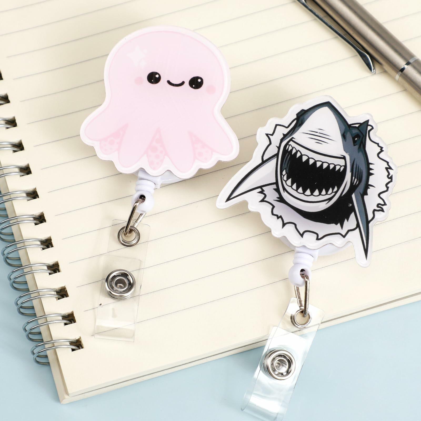 5 Pcs Retractable Badge Reel ID Clip Holder Jellyfish Whale Shark Nurse