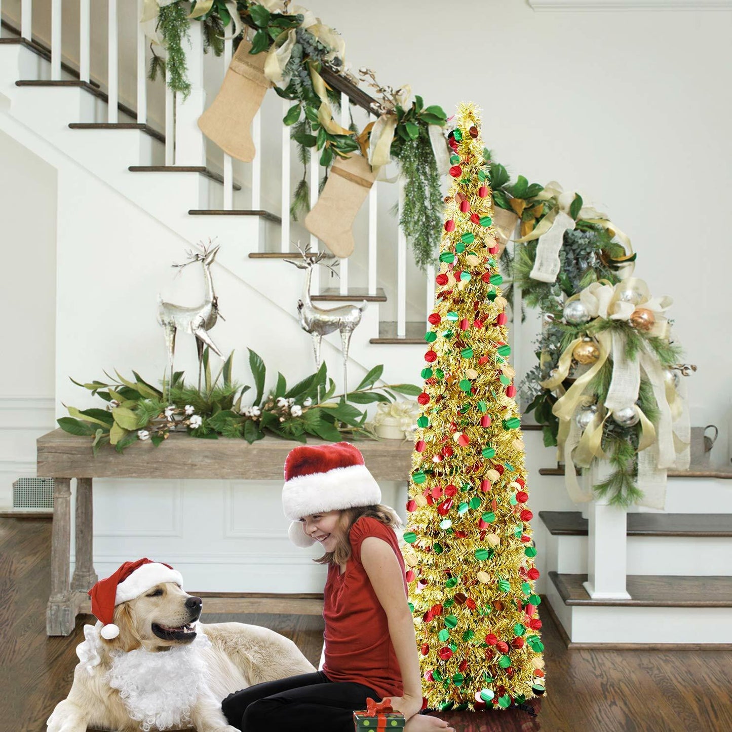 - Versatile Holiday Decor: Standing at 5 feet tall Christmas tree, this tinsel Christmas Halloween tree is the ideal addition to any space—whether it’s your porch, living room, bedroom, office, fireplace, backyard, terrace, or garden. It instantly elevates your holiday ambiance, lighting up any corner of your home with festive cheer.