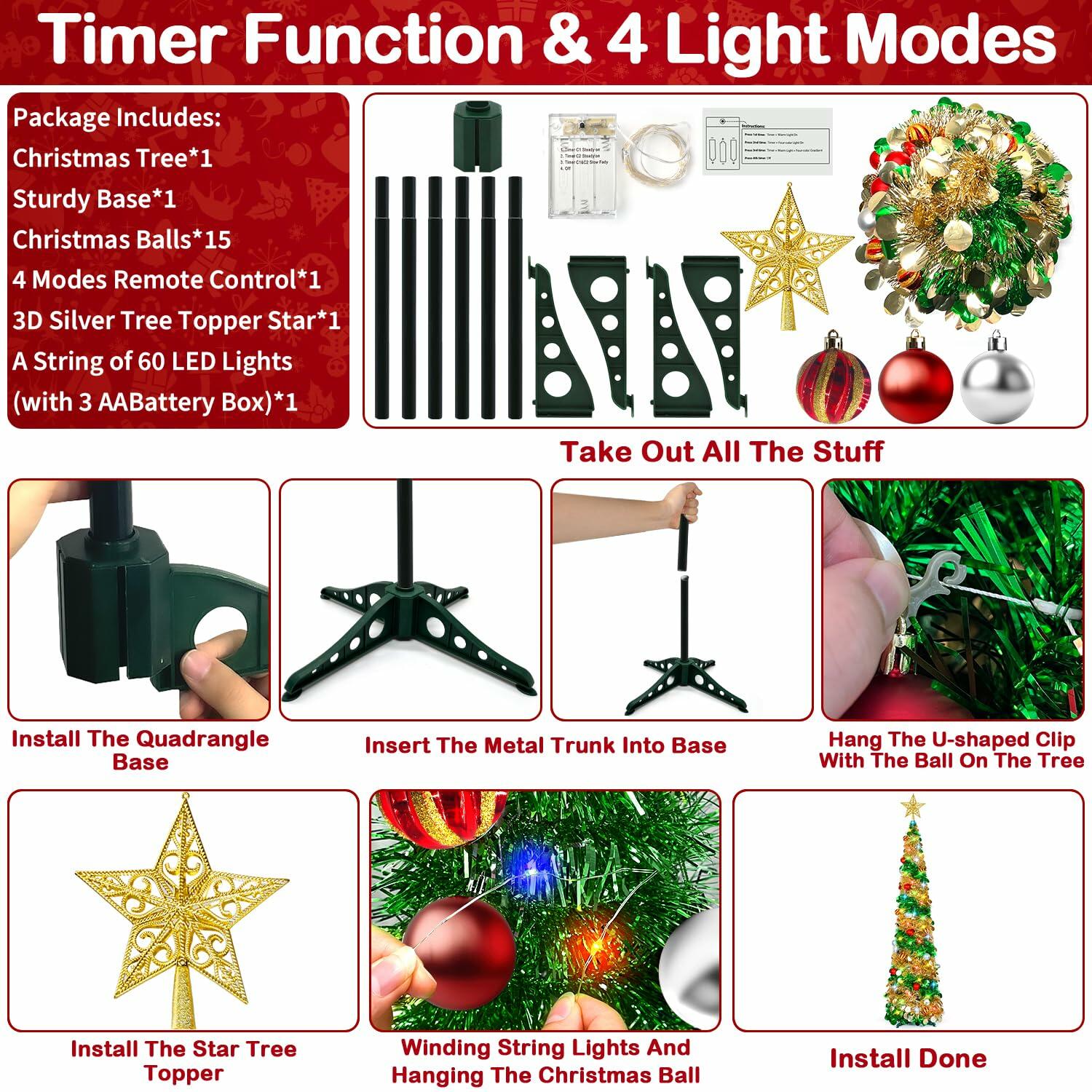 - [Premium Material Construction] Designed with elegance and durability in mind. Made from quality PVC material, 5FT high equipped with a beautiful star topper, which not only makes the tree look more beautiful but also has a good sense of Christmas atmosphere with 60 four color LED lights