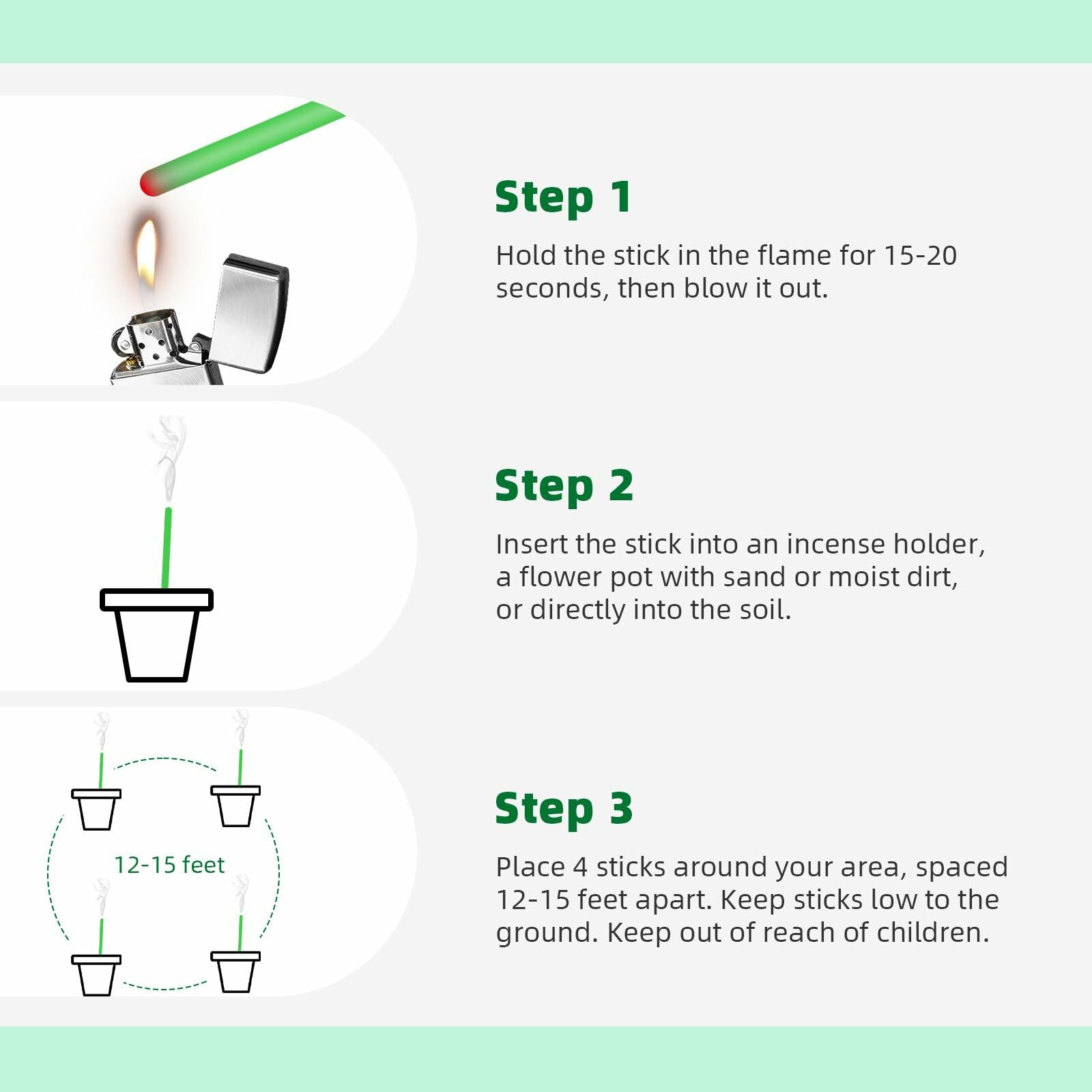 Easy to Use: Place these adaptable incense sticks on a holder, in soil, or soft sand, making them perfect for settings like backyards, parks, and outdoor picnics.