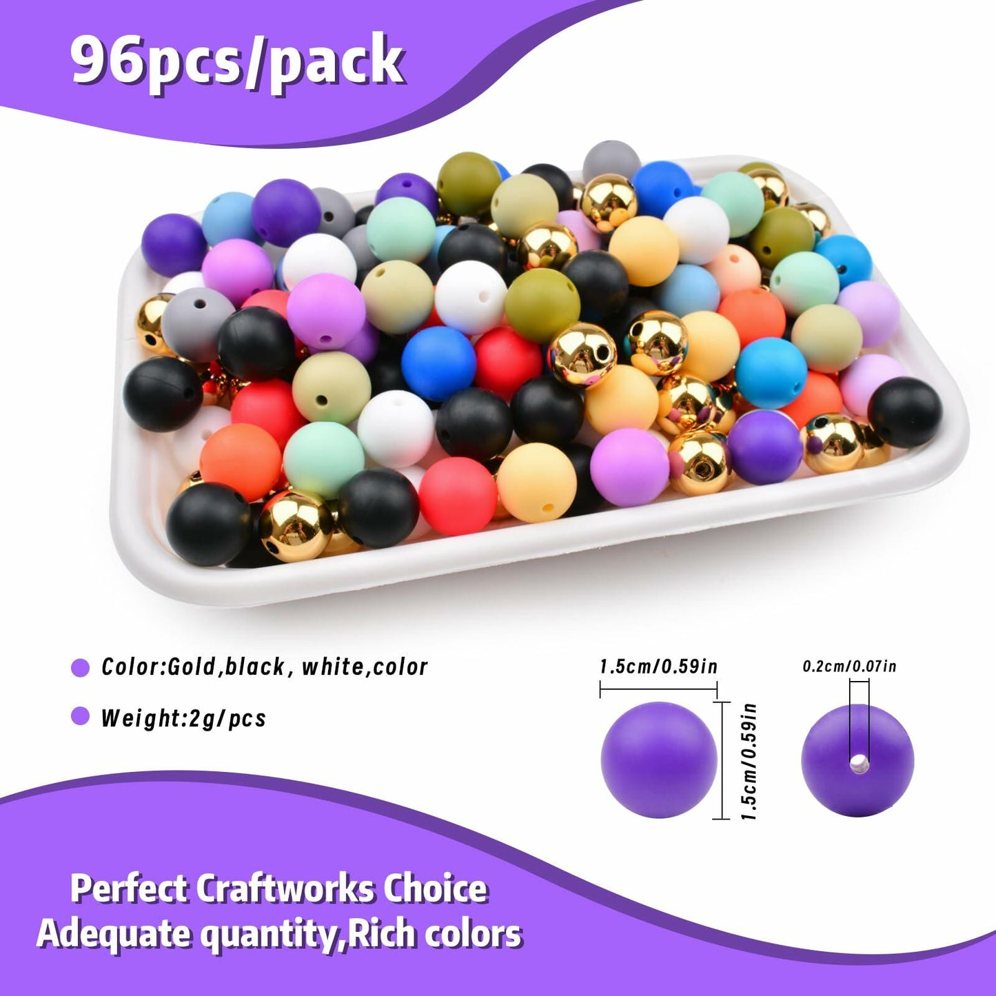 96PCS 15mm Silicone Beads Kit 19 Colors Round DIY Crafts Bracelet Necklace