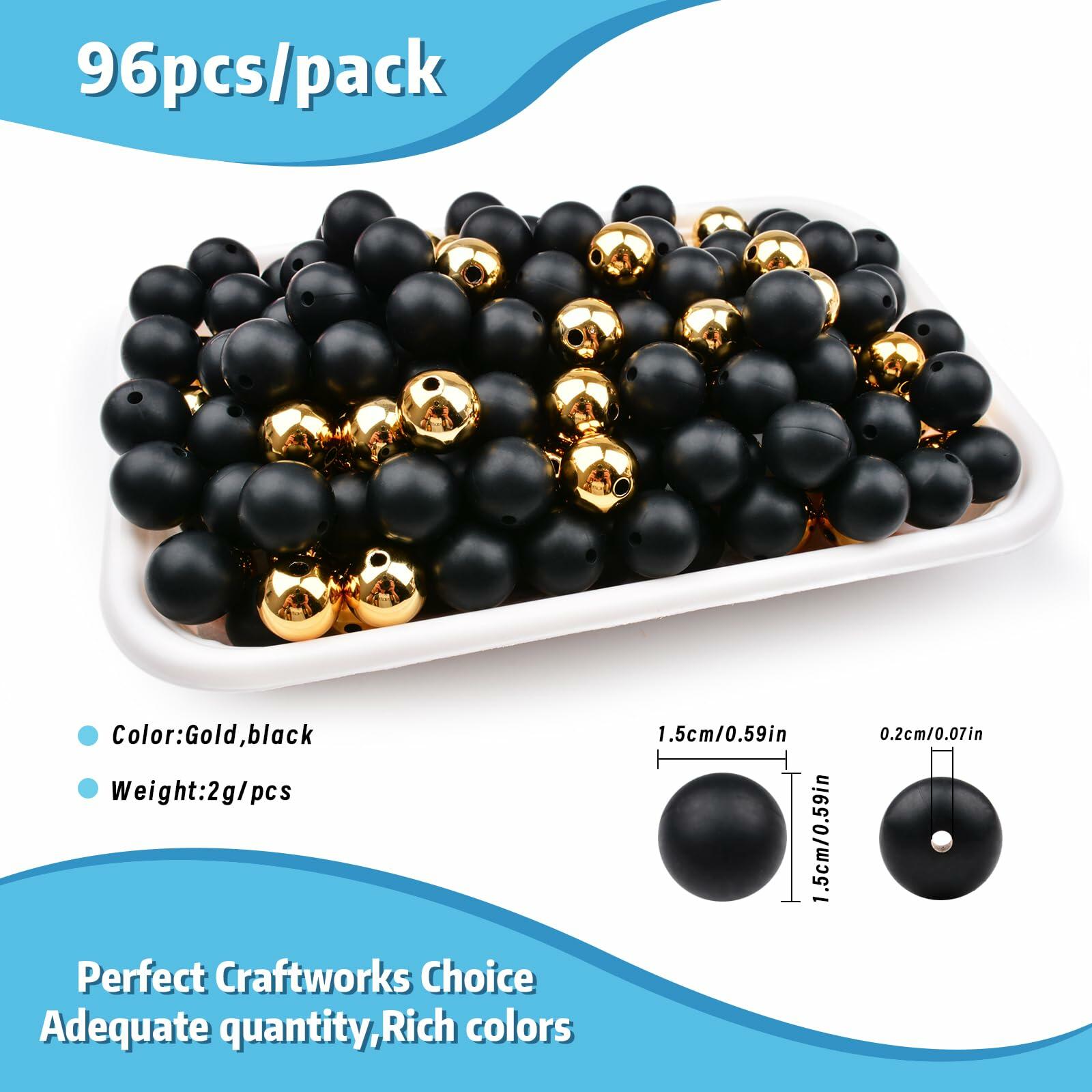 96PCS 15mm Silicone Beads Kit 2 Colors Round Rubber DIY Crafts