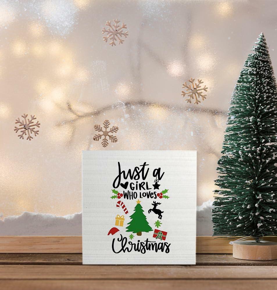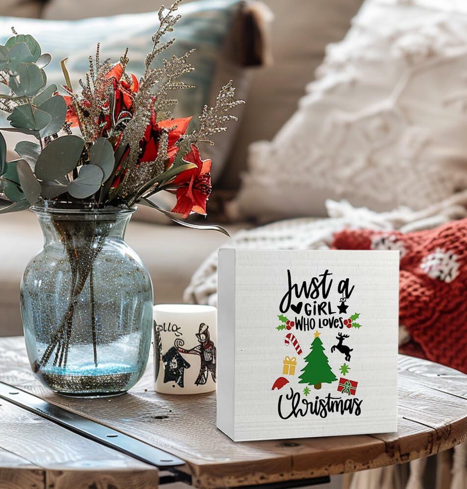 Absnfatu Christmas Wooden Box Sign Just a Girl Who Loves Christmas 5x5 Inch
