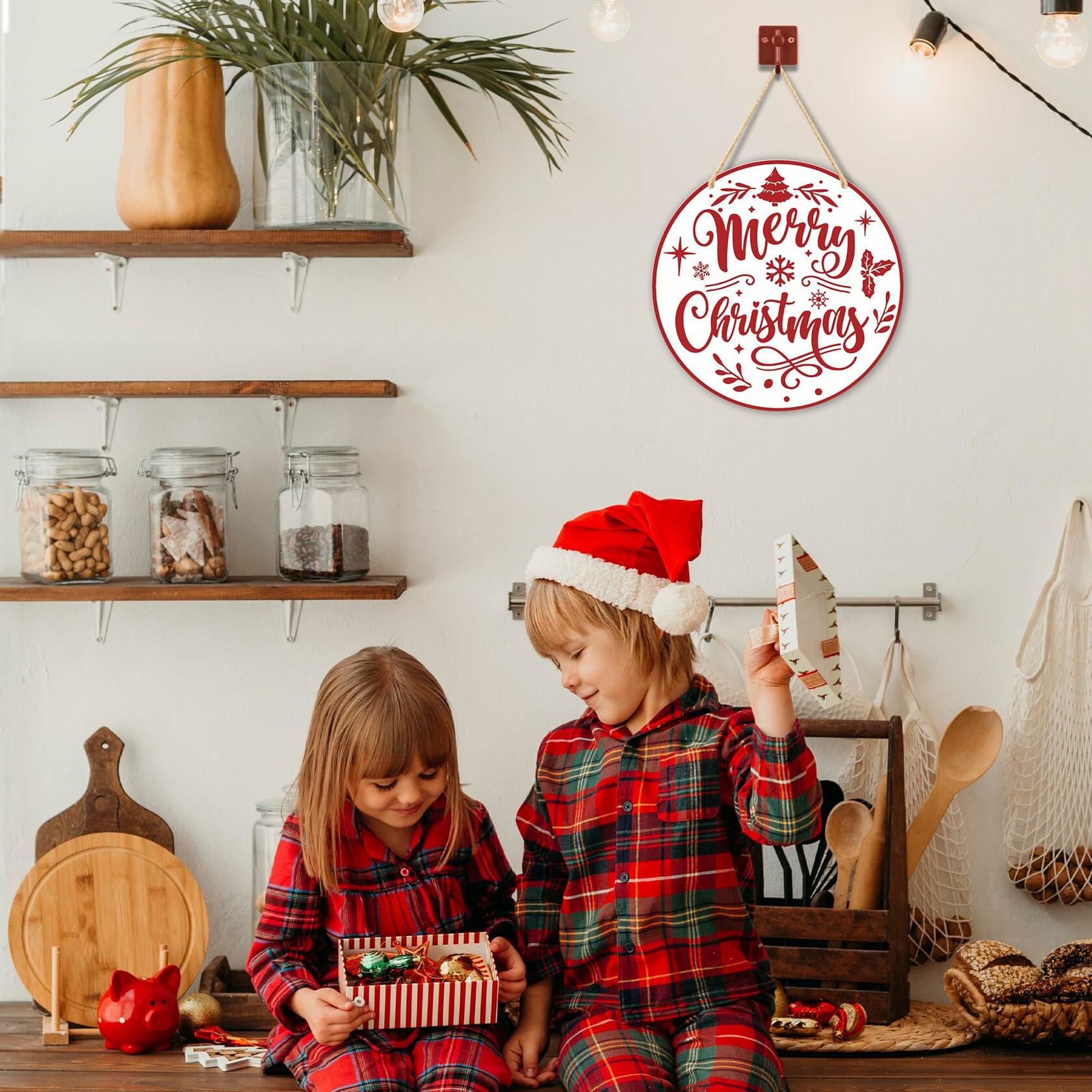 Absnfatu Merry Christmas Wooden Wall Door Sign Hanger Decor