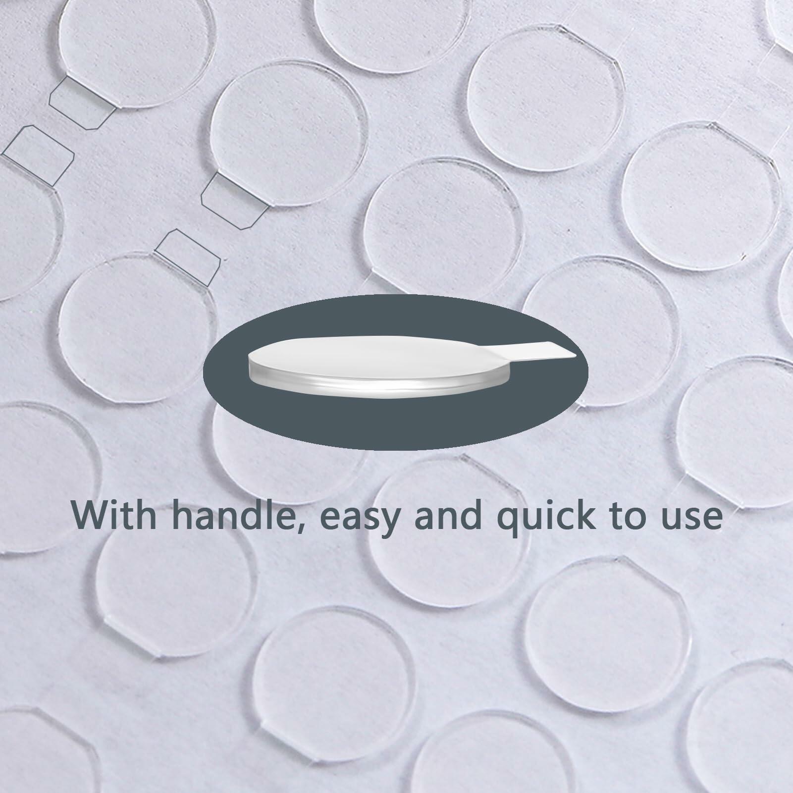 Instructions: Clean the place where the sticker will be put on and keep dry first. Take off the round putty, and stick it on where you want. Tear off the white paper on the round putty. Paste another object on it, then wait a moment, they will stick together firmly. Specifications: Color: Transparent Diameter: 0.30 * 0.51 inches Note: If you have any questions, please contact us in time.
