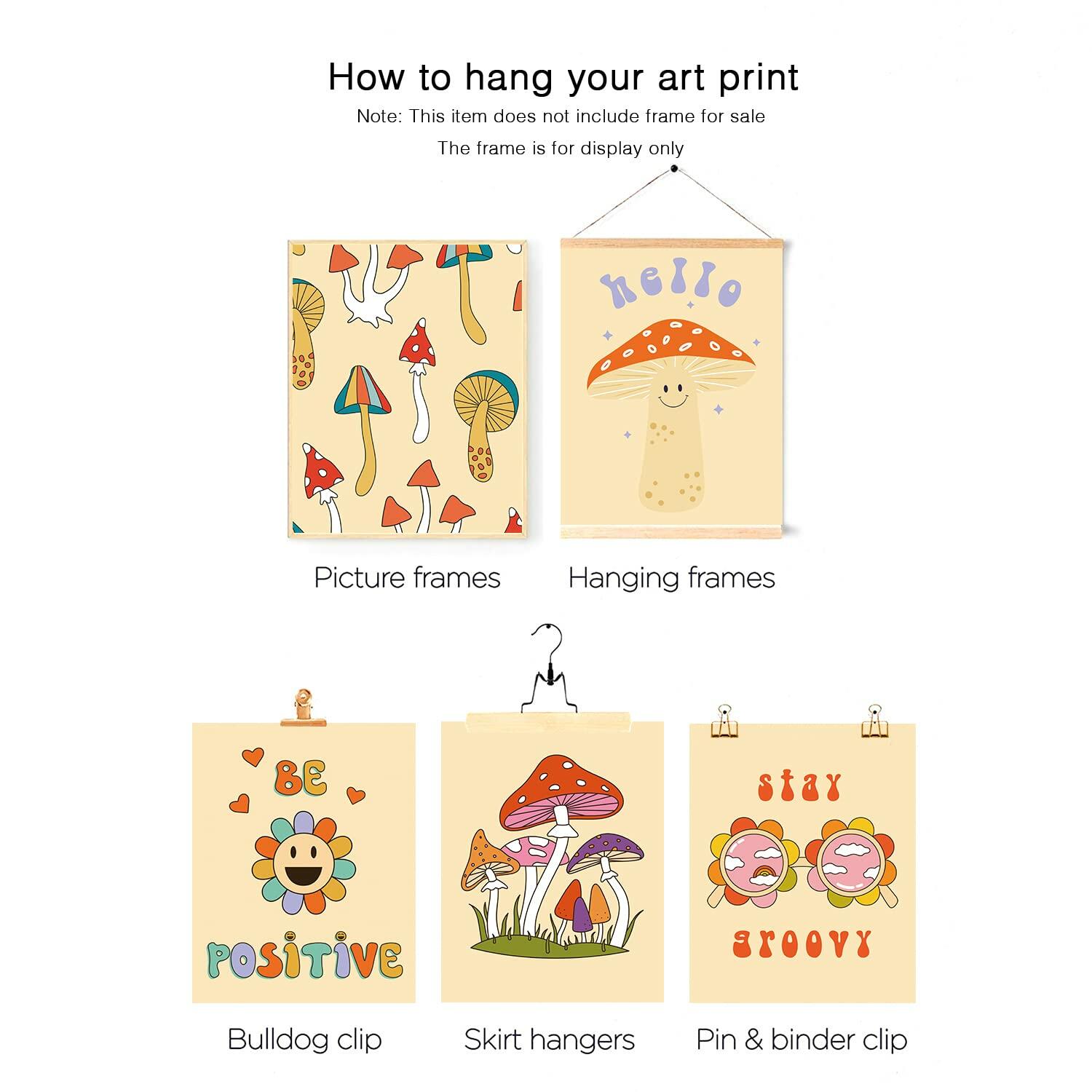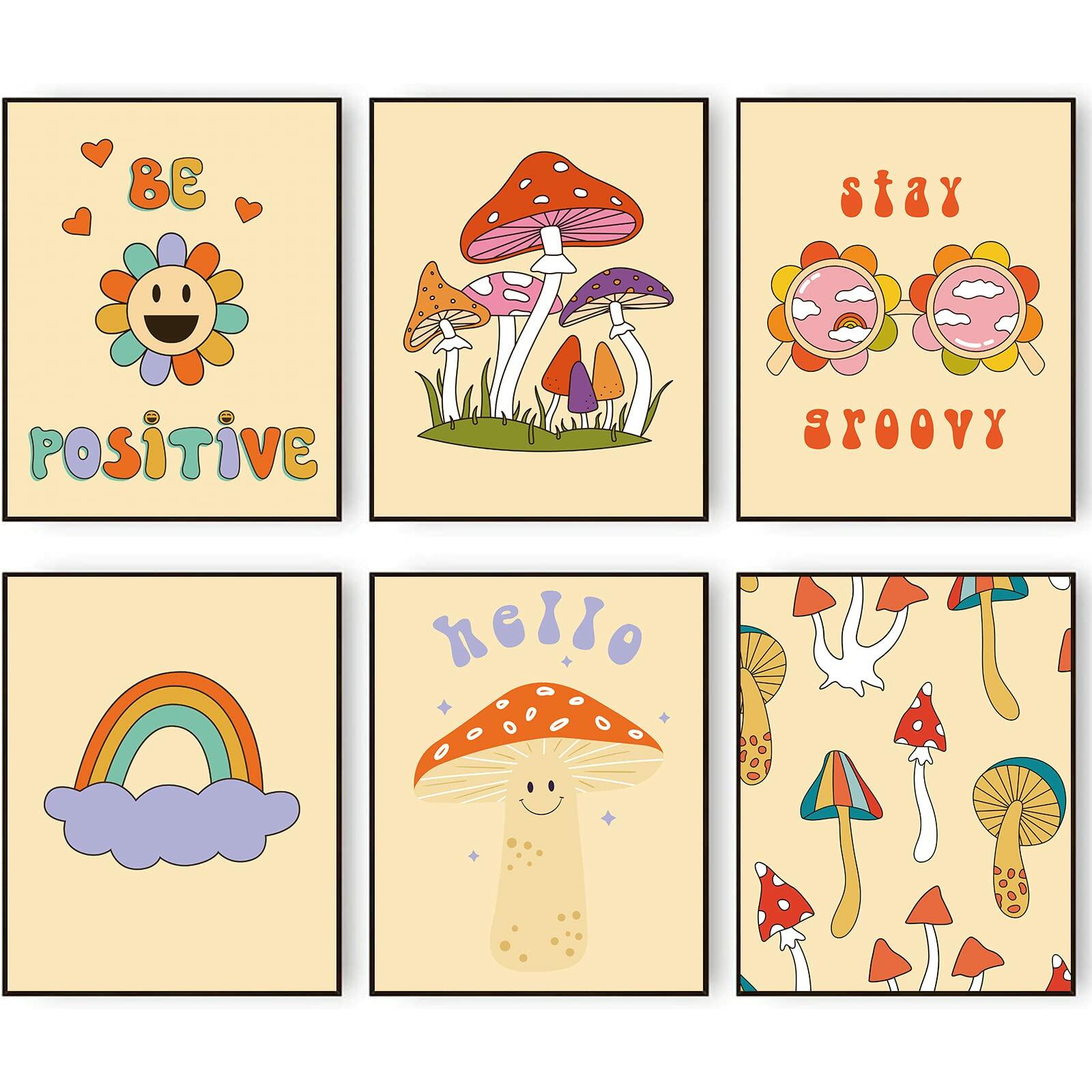 Admmixoo Be Positive Vintage Hippie Flower Wall Art 8x10 H Style Unframed