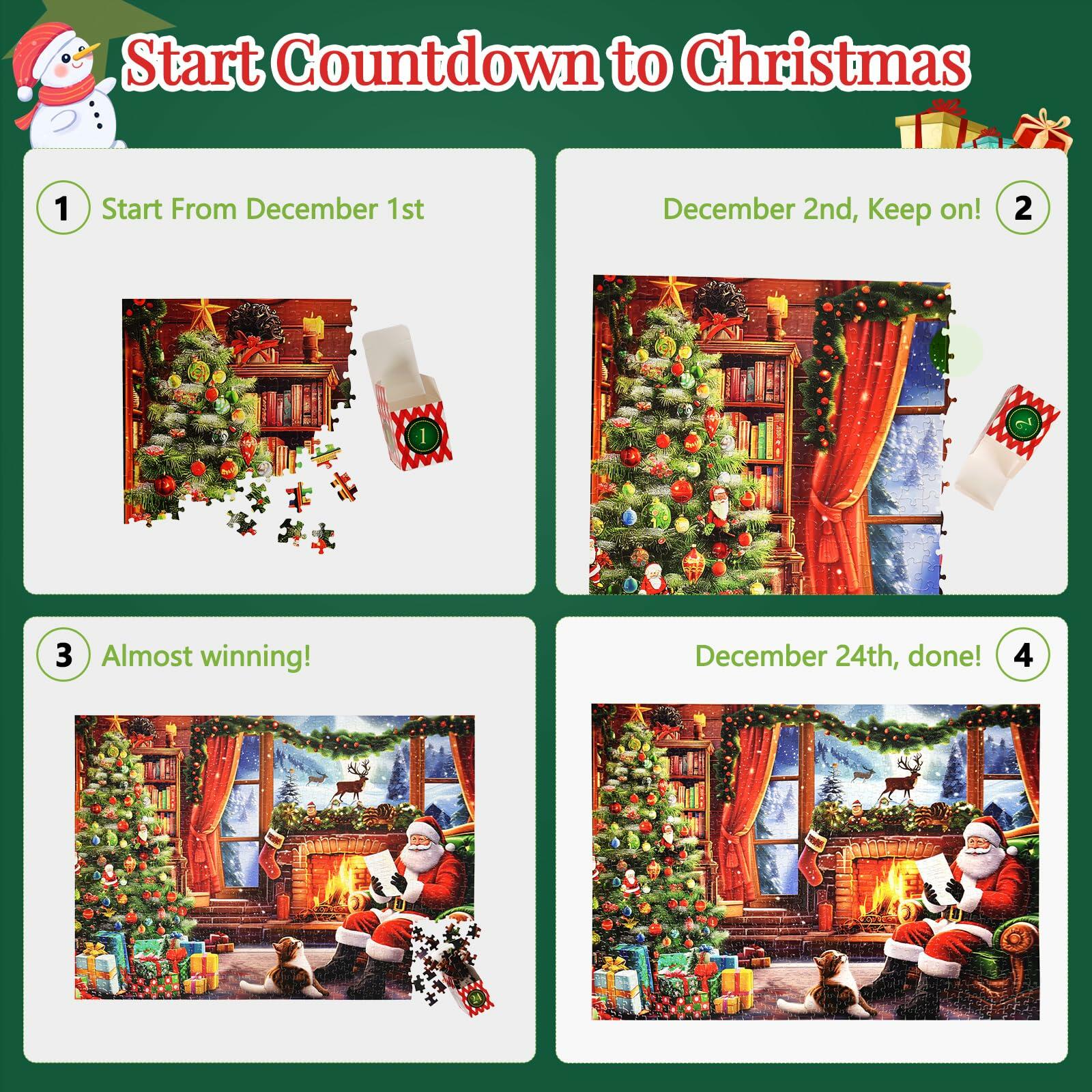 - Memorable Activity - A Puzzle Advent Calendar is a fun way for adults, kids and family to countdown the number of days until Christmas. Create a memorable experience for yourself and a pleasant family event for the family at Christmas.This is the perfect gifts for jigsaw puzzle lovers who want something fun and relaxing to do each day leading up to Christmas.