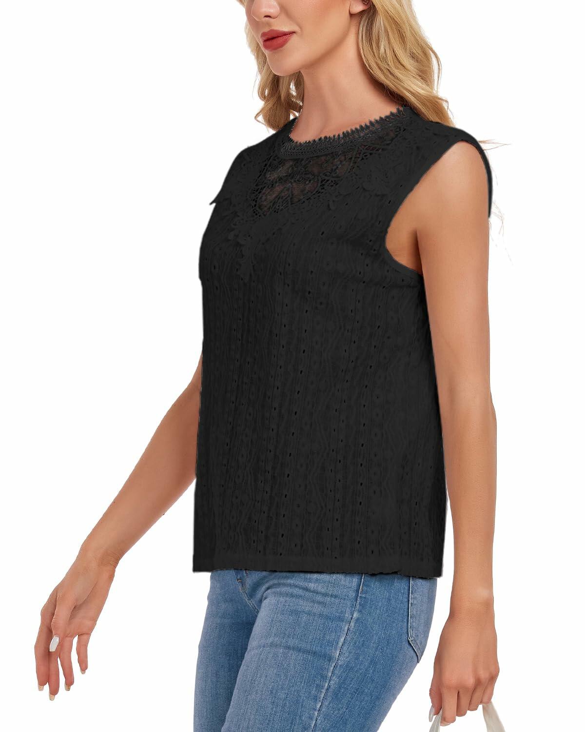 AGWISH Women’s Lace Tank Top Sleeveless Summer Casual Slim Fit Black S
