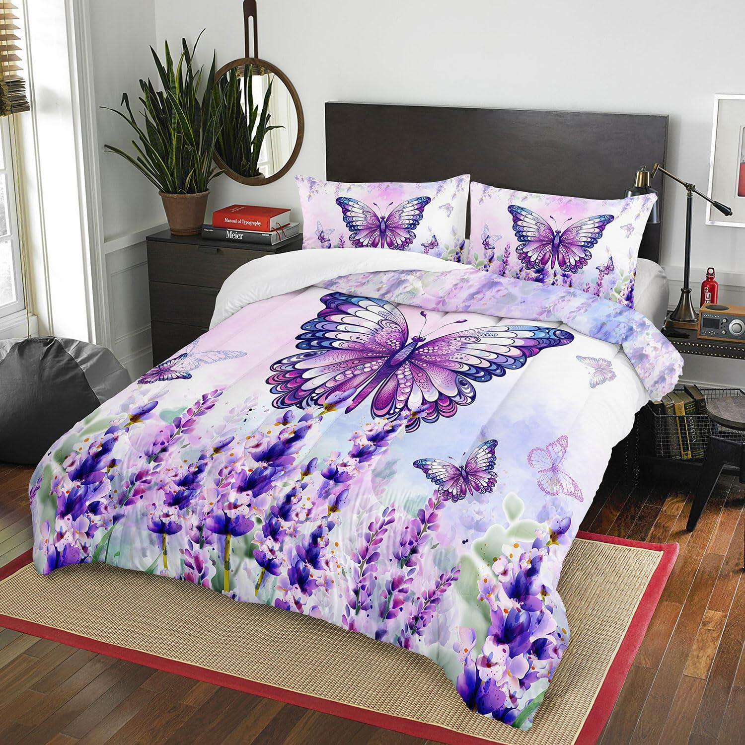 AILONEN Twin Butterfly Comforter Set Girls Lavender Purple 3 Pieces