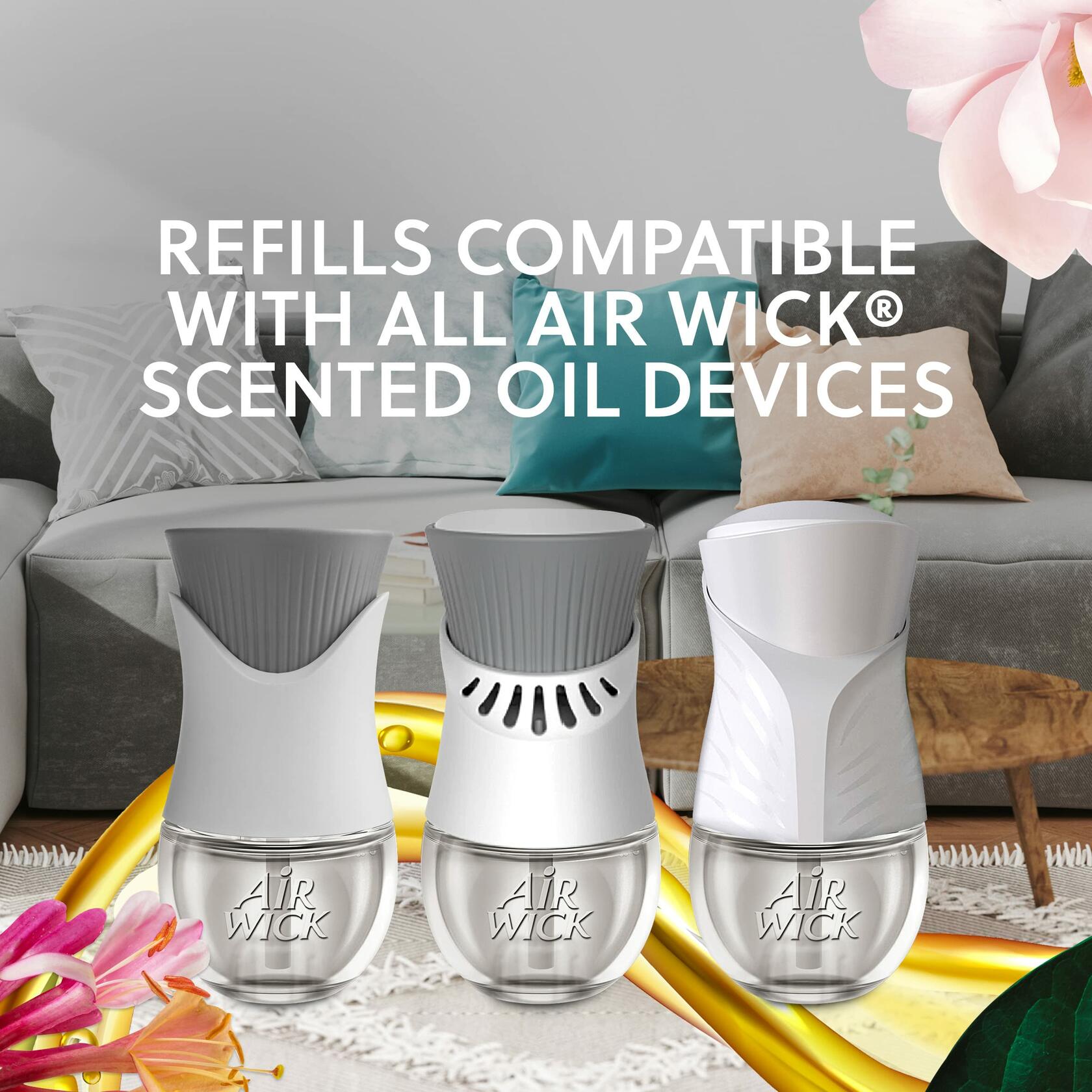 Enhance your home’s scent with Air Wick Scented Oil Refills infused with 100% natural essential oils. Air Wick Scented Oil Refills release continuous fragrance for up to 60 days (based on low setting) so your home smells welcoming. Our latest Air Wick scented oil warmer optimizes airflow for 360 degree fragrance diffusion, reaching every corner of the room for a consistent fragrance experience. The Air Wick Scented Oil warmer also allows you to choose between 5 fragrance settings for just the right amount of fragrance. It continuously diffuses and carefully blends fragrance throughout your home, office, or any space.
