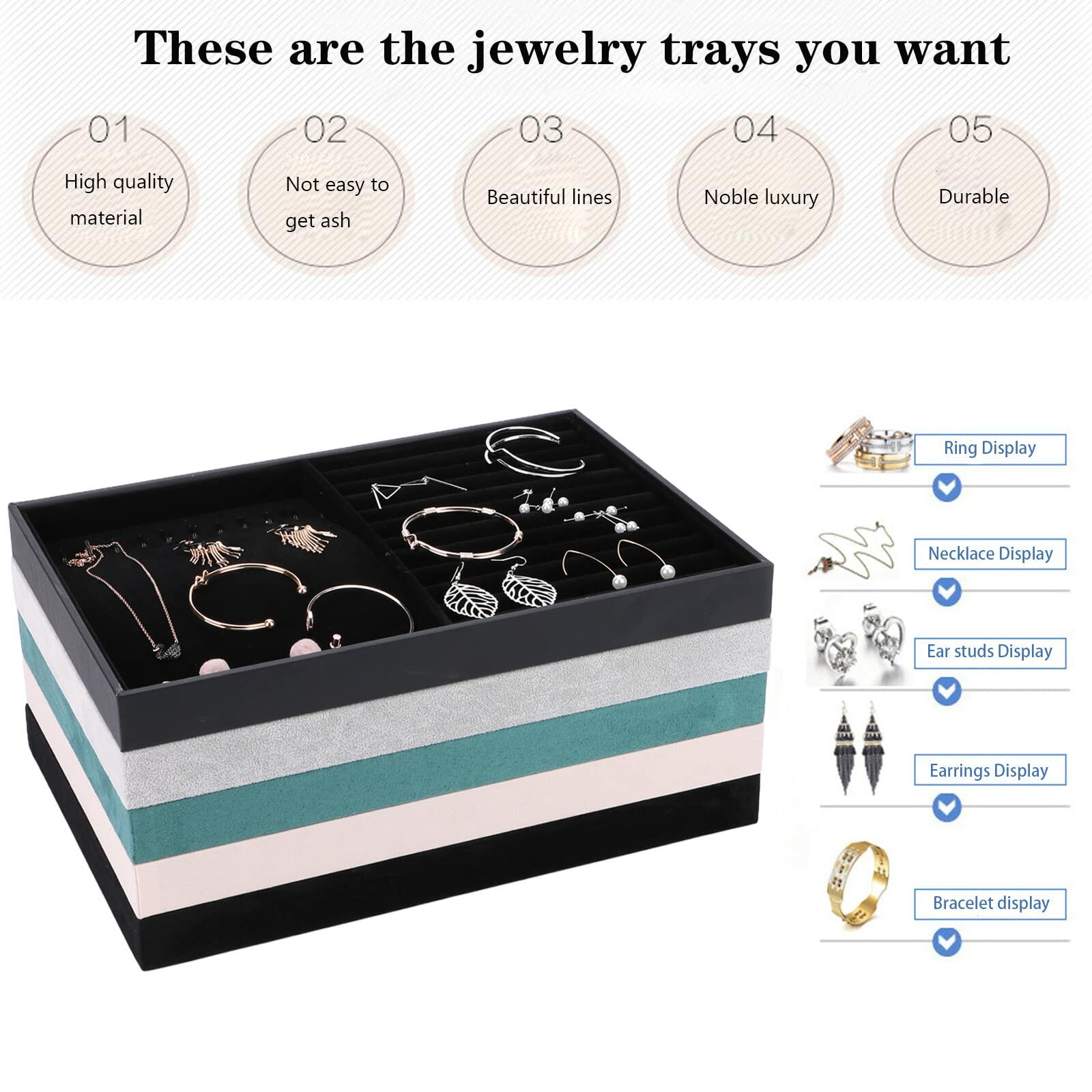 - 【Detachable and Ddjustable】These jewelry organizer trays can store your rings, necklaces, studs, earrings, bracelets and other jewelry, and with removable dividers, can accommodate different sizes of jewelry storage needs.