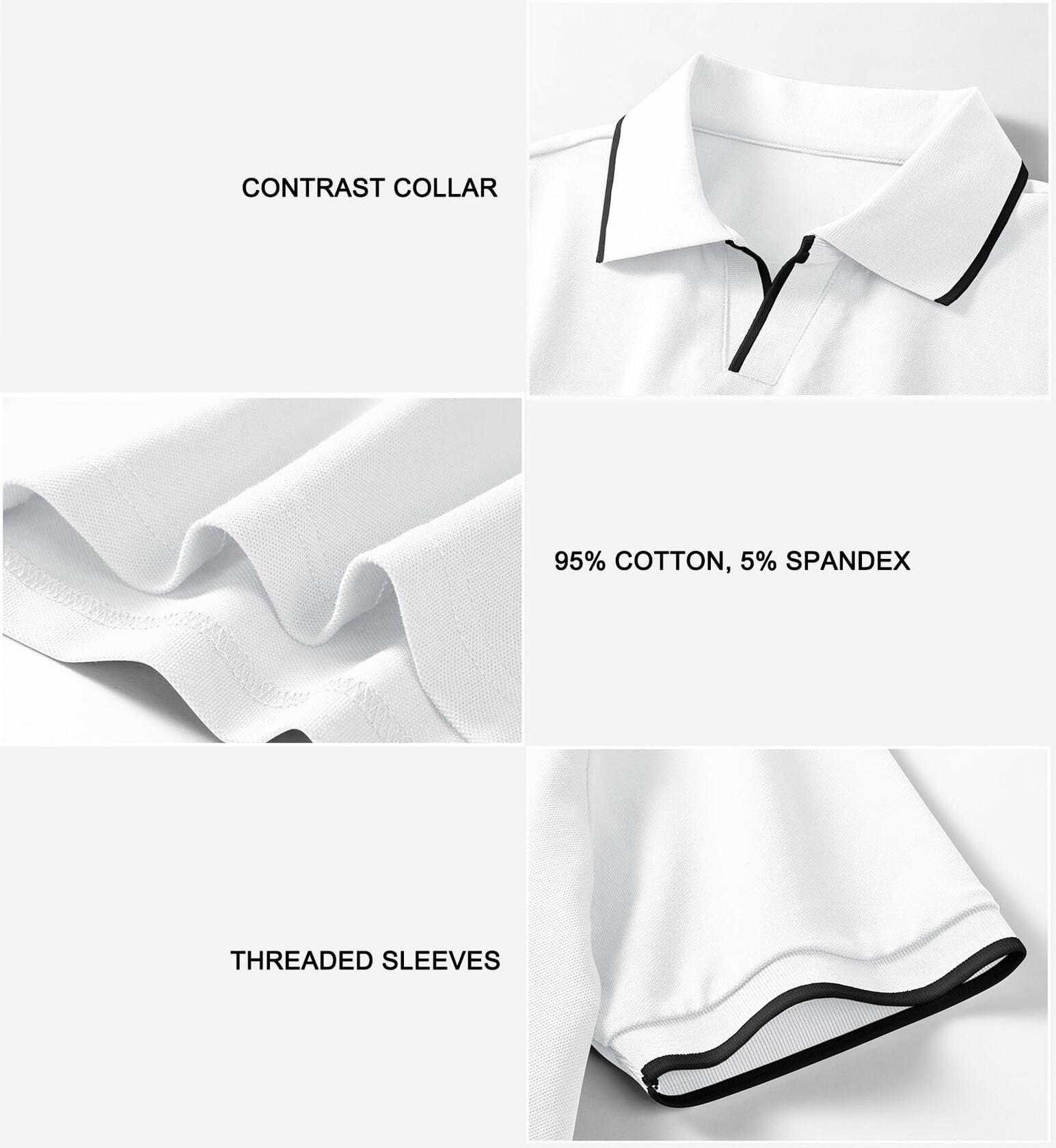 - Material: Men's Polo Shirt short sleeve 95% cotton and 5% spandex ribbed knit material.
