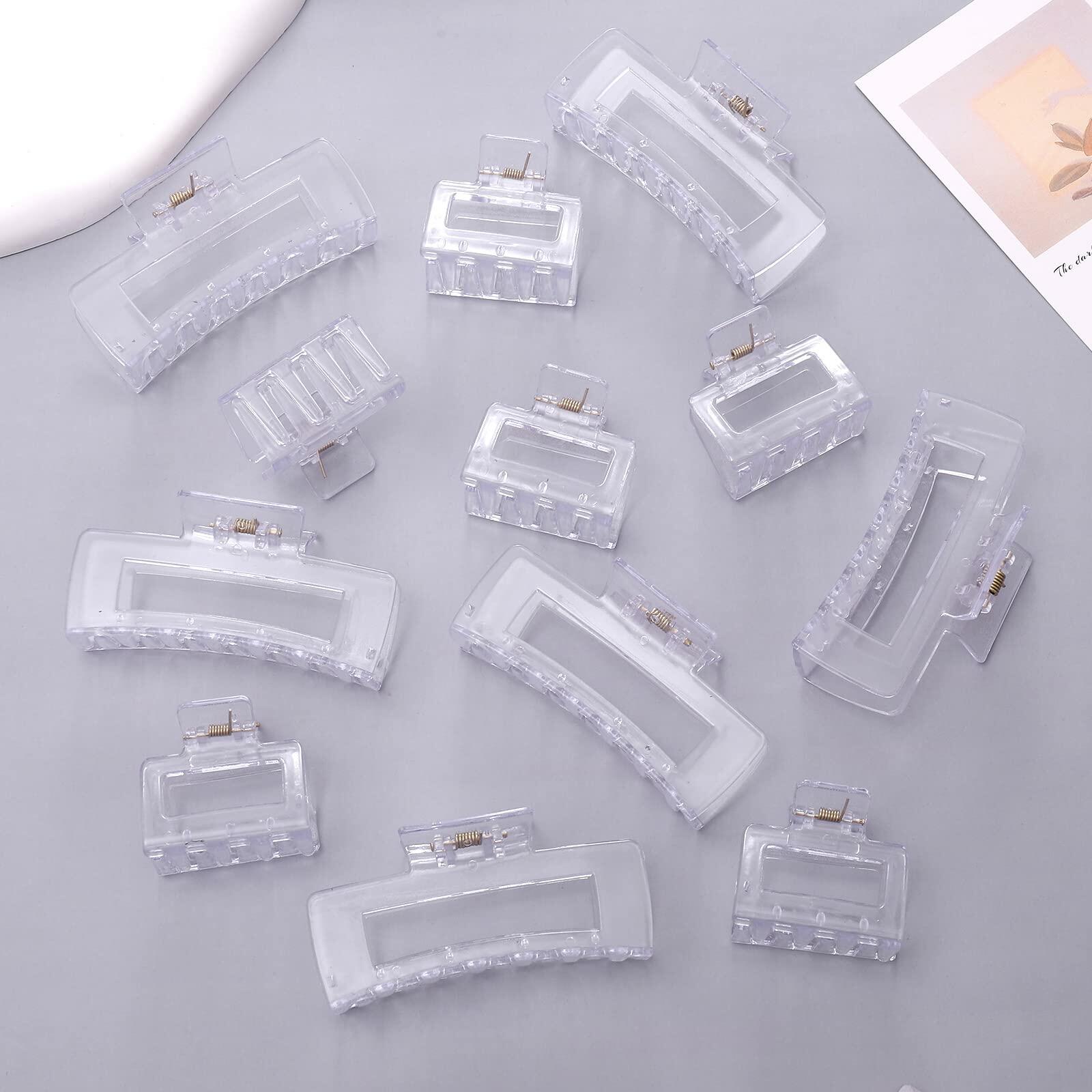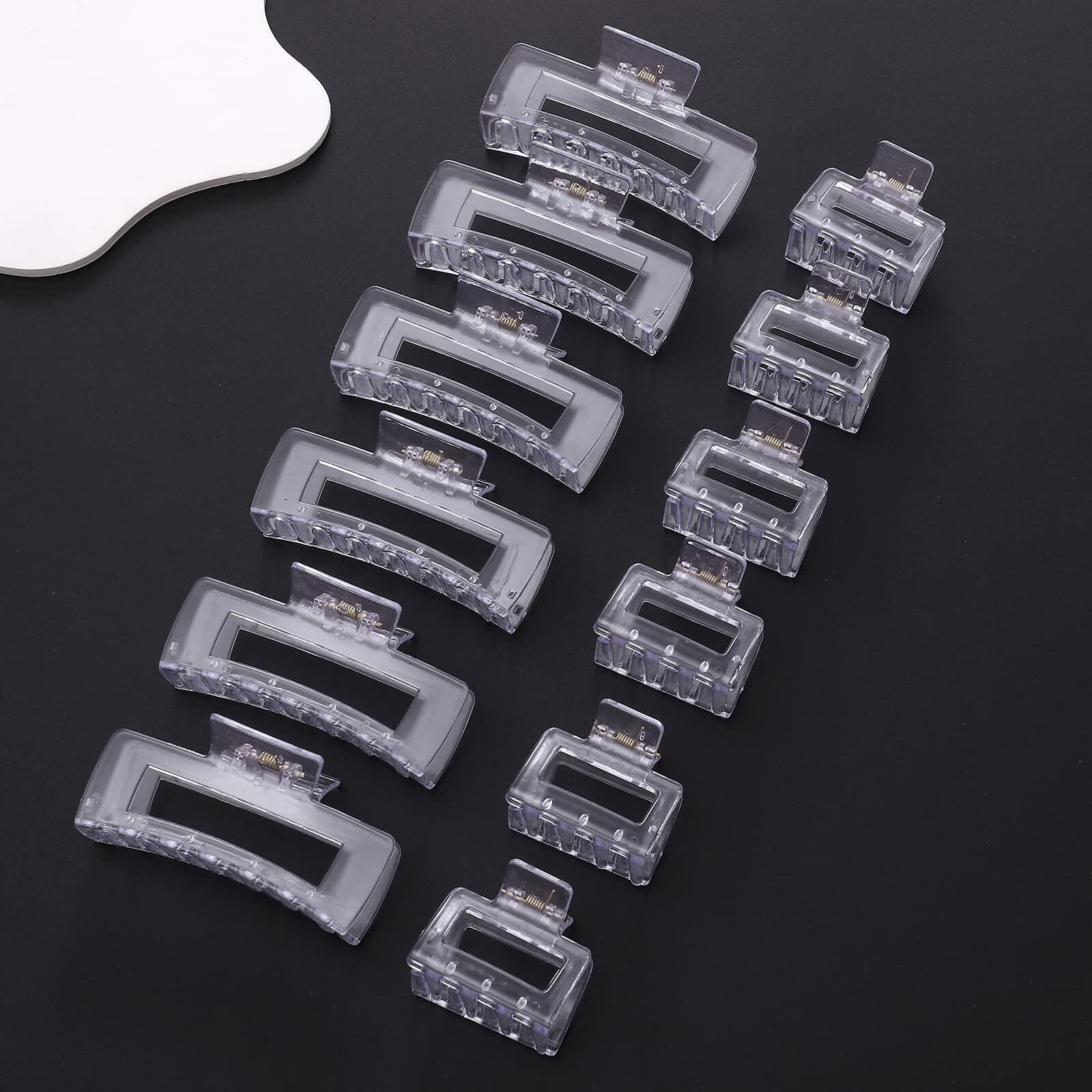 12 Pack Black Square Claw Clips, Big and Small Neutral Rectangle Hair Claw Clips, Non-slip Matte Large Hair Clips for Women,Strong Hold jaw clip for Thick Thin Hair DURABLE:These rectangle hair claws are made of durable plastic which painted with a matte paint. threw it down from height, it also keep in a perfect condition.The elastic metal spring is covered with plastic.The claws open almost 180 degrees versus. Package: rectangle hair clips includes 6 large black rectangle claw clips, and 6 medium hair claw clips with the black color that could meet your all hairstyle and match different color clothes.keep beautiful and elegant on your hairs. NON-SLIP:The matte coating does a good job keeping your straight smooth hair from slipping out, but without pulling or grabbing it like a rubber would.these claw clips are non-slip, so you can be assured that your hair will stay put. Thick and thinner hair : The Package include 6 PCS Large square Clips (4inches) and 6 PCS small square Clips(2 inches),These clips are just the right size - hold all of your thick hair, but also would be tight enough for Thick and thinner hair. Wrapped with Gift Box:These Square Large hair claw clips keep your hair tidy .These Square hair clips are all wrapped with a gift box to make sure these elegant hair claw clips are in a good condition during delivery.