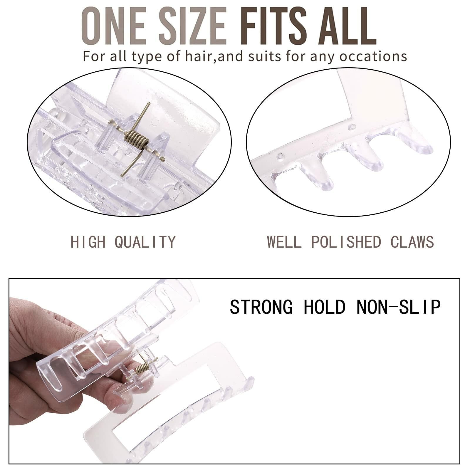 • Thick and thinner hair : The Package include 6 PCS Large square Clips (4inches) and 6 PCS small square Clips(2 inches),These clips are just the right size - hold all of your thick hair, but also would be tight enough for Thick and thinner hair.