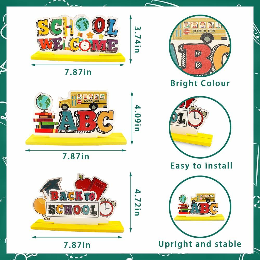 - 【Package Content】you will receive 3 pieces different back to school wooden table centerpieces for the first day of school in total, enough styles to meet your needs and proper size for you to decorate classroom table.