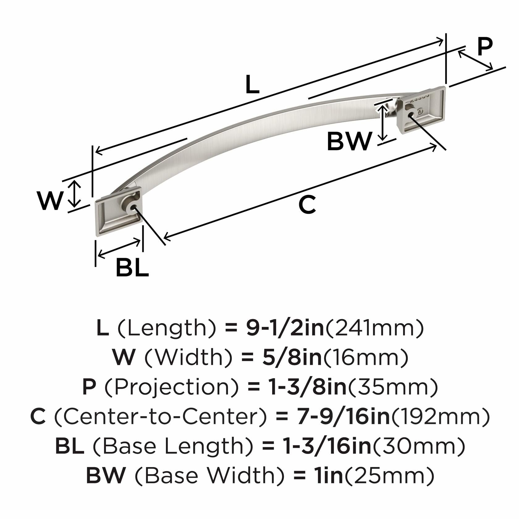 Amerock Candler Satin Nickel Cabinet Pull 7-9/16in Center-to-Center BP29350G10
