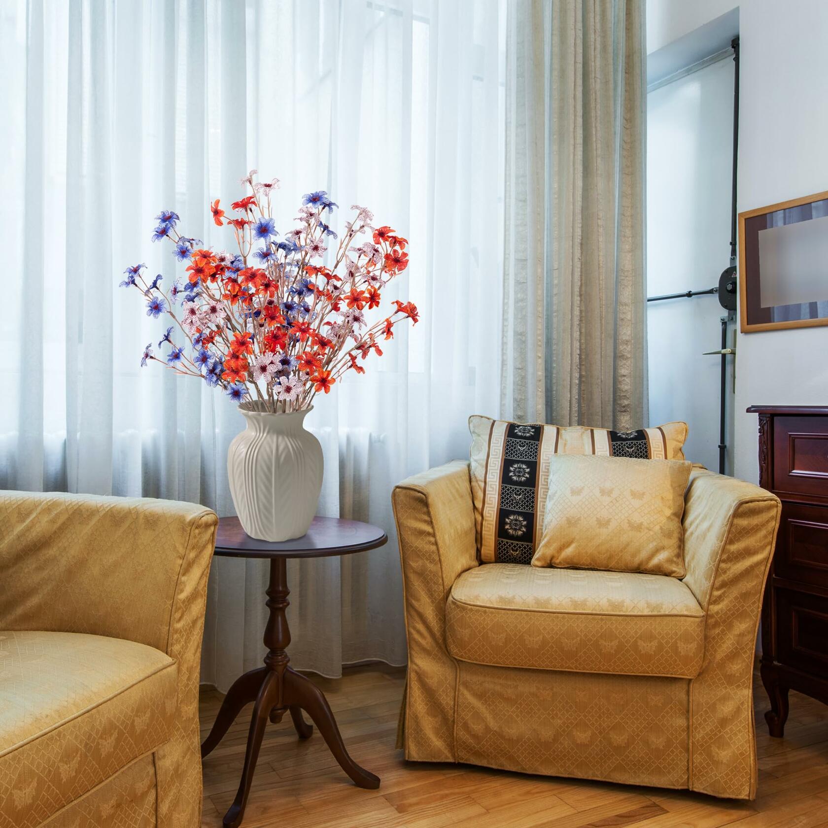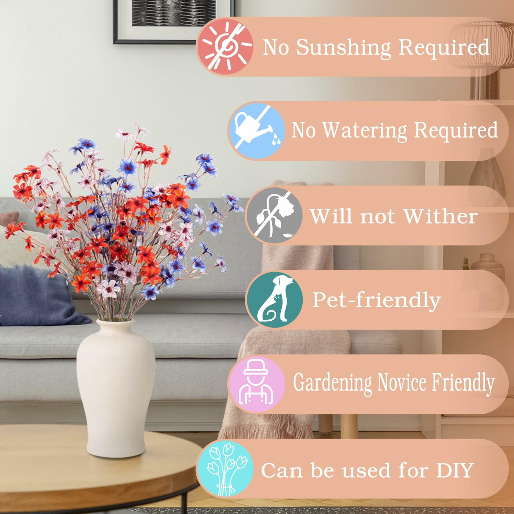 - Multiple Uses: Decorating your vase with artificial long stems fake flowers can liven up the environment. Unlike flowers, they require less maintenance, won't wilt and won't fade. Perfect for home wedding office hotel B&B and other indoor scenes. You can diy this craft to bring beauty and warmth to your life
