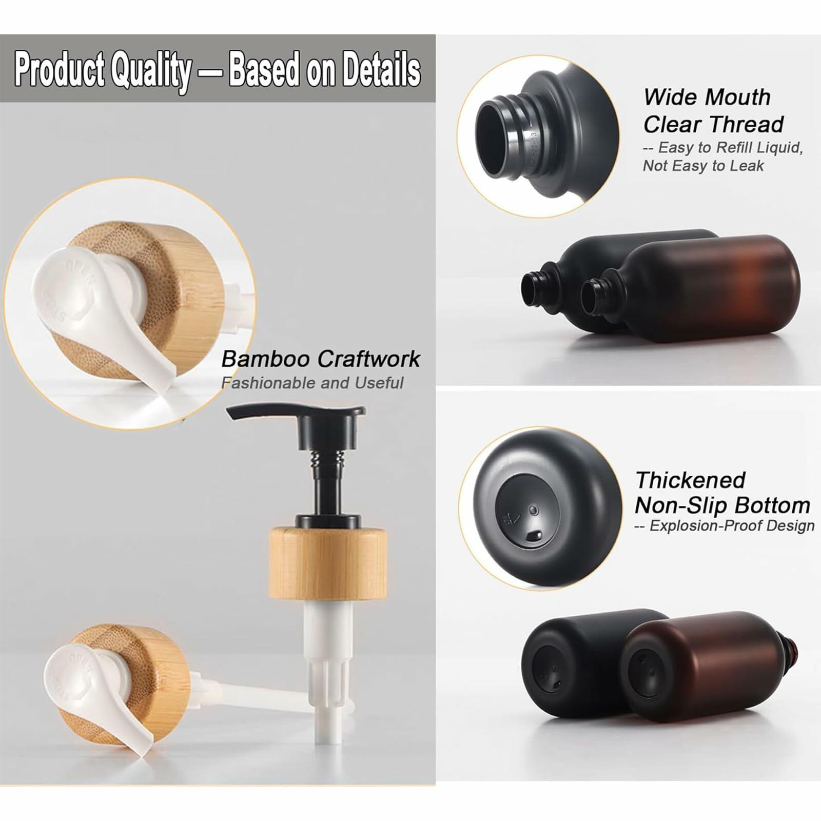 Amorettise Black Plastic Soap Dispenser Bottles 16.9oz 6 Pack Bamboo Pump