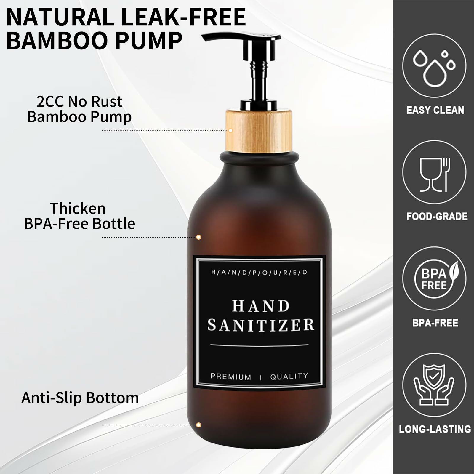 - MULTIFUNCTION: This refillable shampoo dispenser bottles is perfect for bathroom office or kitchen for storing and distributing hand sanitizer, detergent, lotion, shampoo, essential oils, etc. Each package comes with several easy to read permanent, waterproof labels for you to distinguish easily.