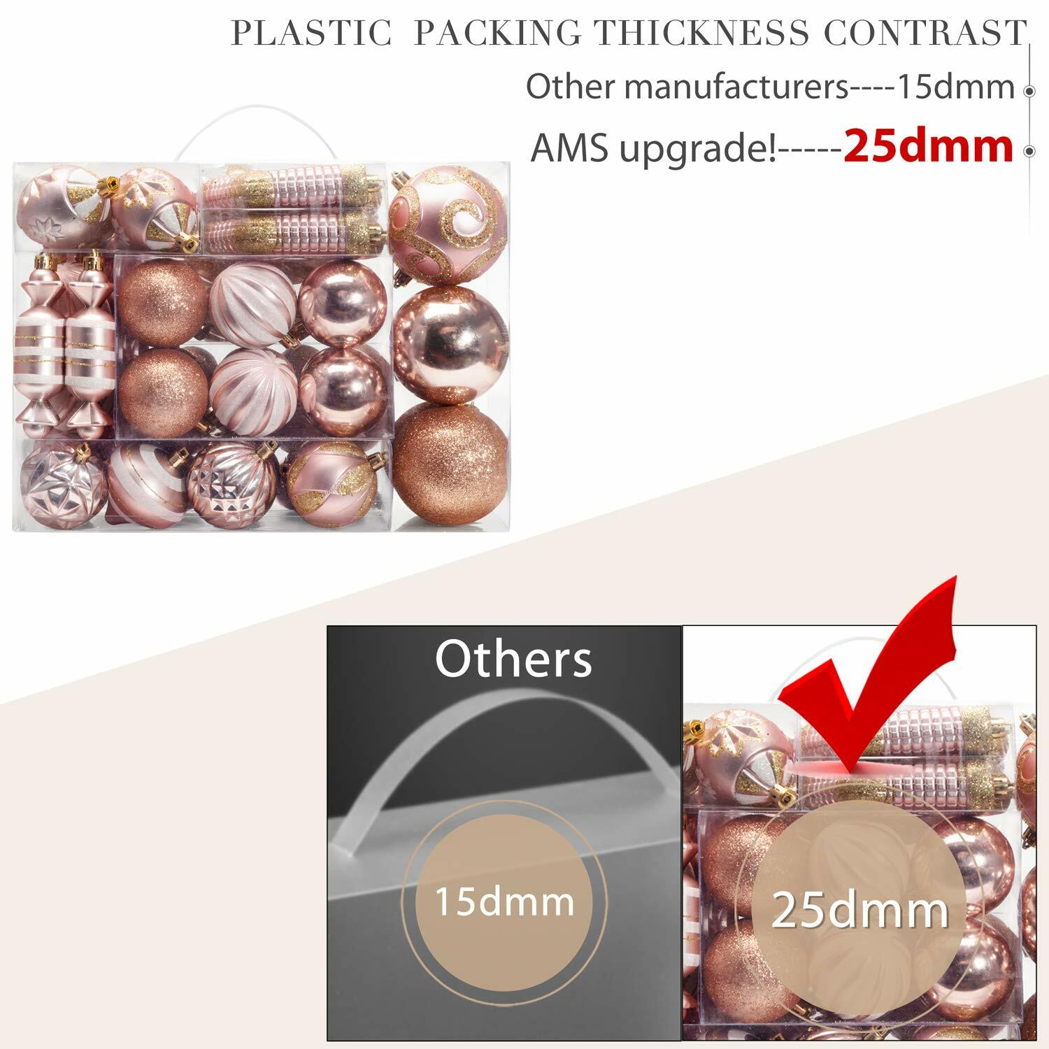 AMS 81ct Christmas Ball Ornaments Holiday Tree Decor Champagne Reusable Box