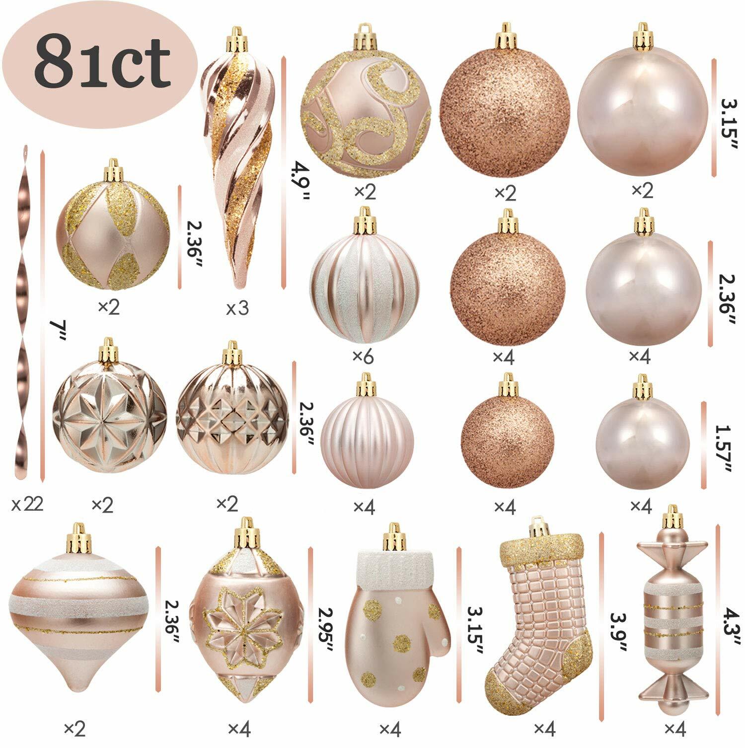 - 81 pieces of Xmas ornaments in one gift package with a variety of shapes and designs in the most widely used sizes.