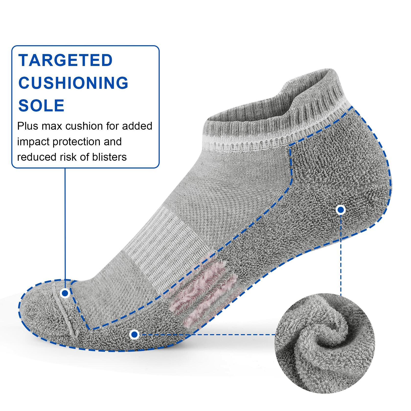 - Cushioned Ankle Socks: The womens athletic socks with cushioned sole are designed for moisture wicking and extra comfort in high wear area, gives you extra comfort for footdrills and weightlifting, while high friction yarns in the footbed reduce slippage.