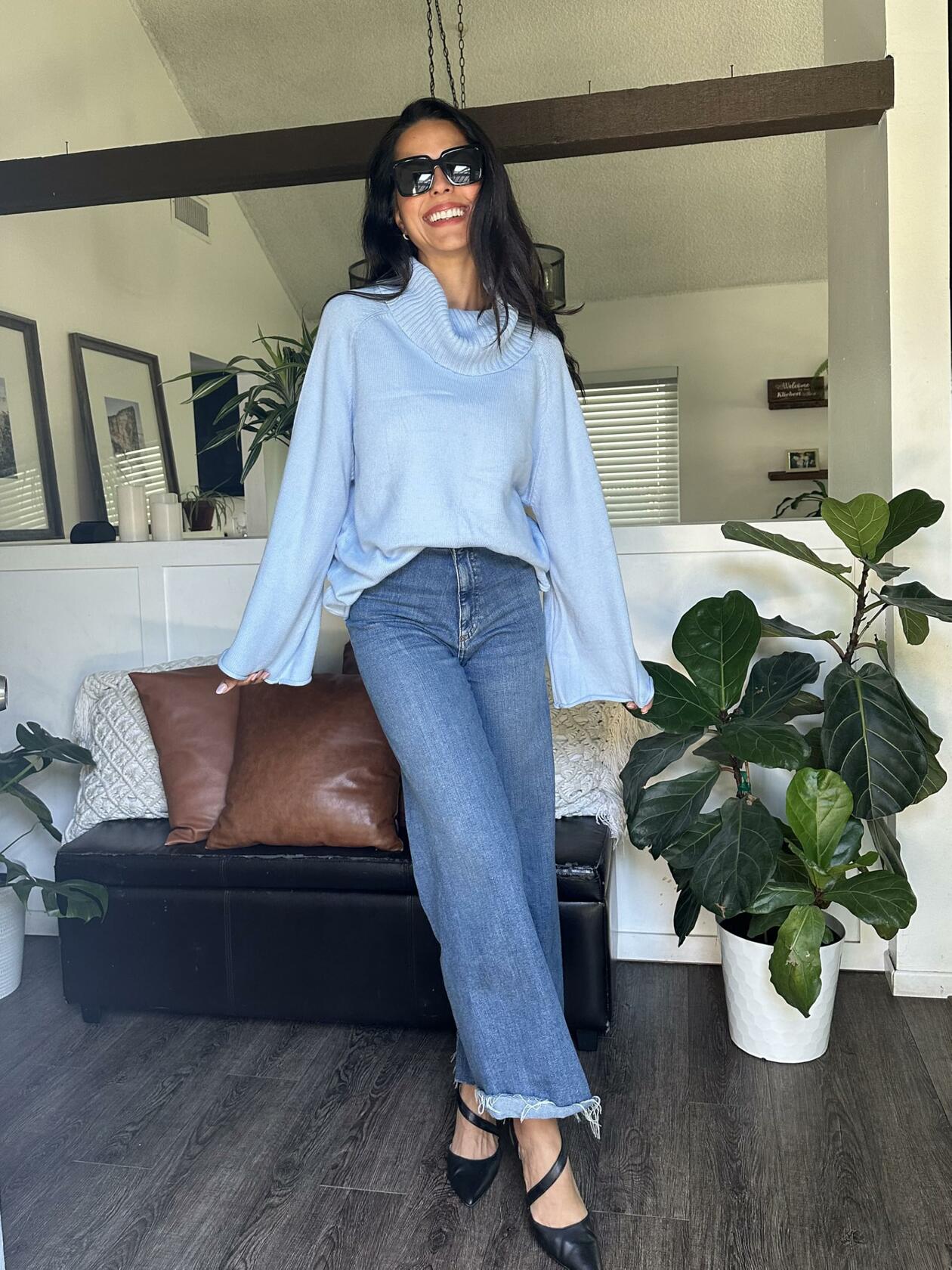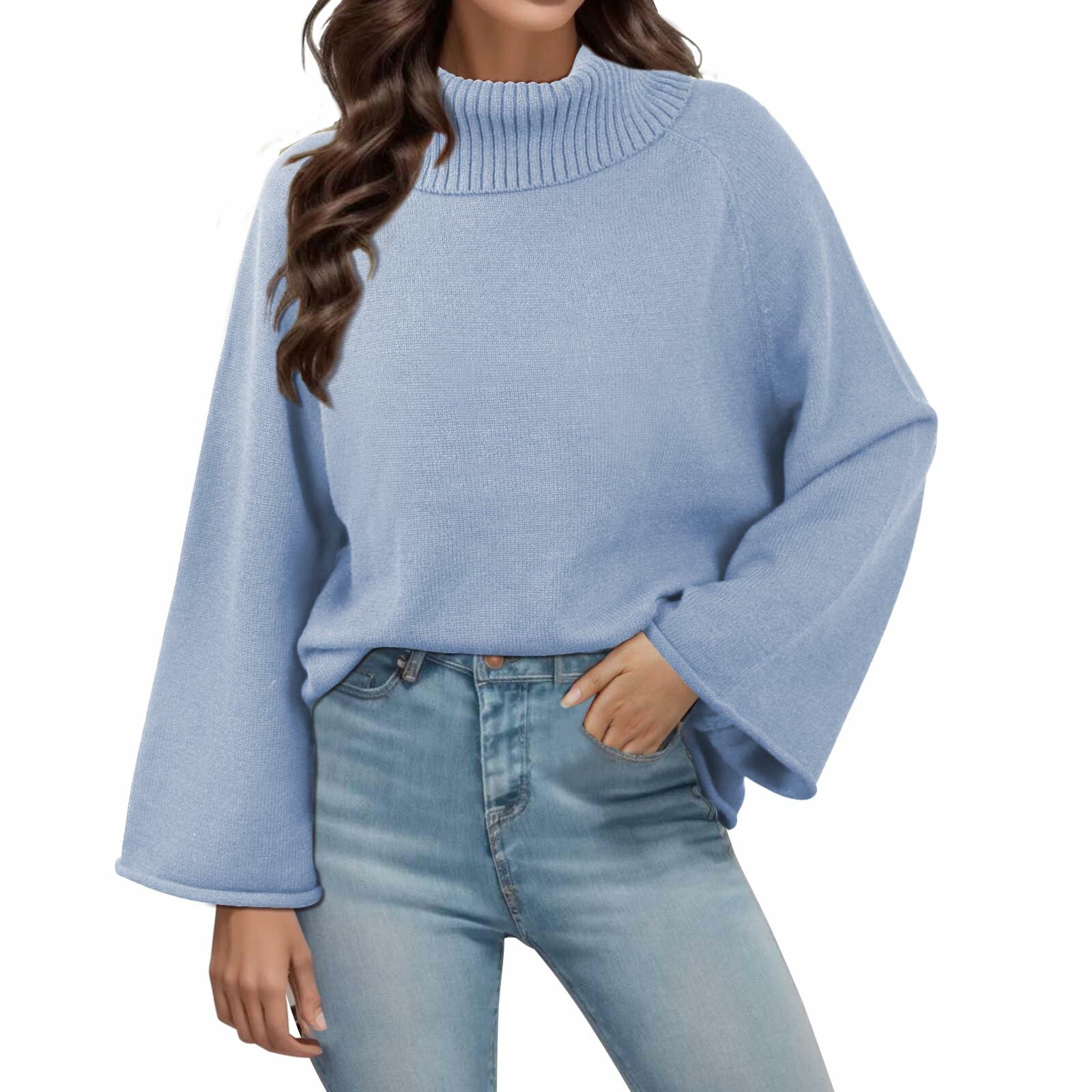 Angashion Womens Turtleneck Pullover Sweater Ribbed Knit Sky Blue Size XL