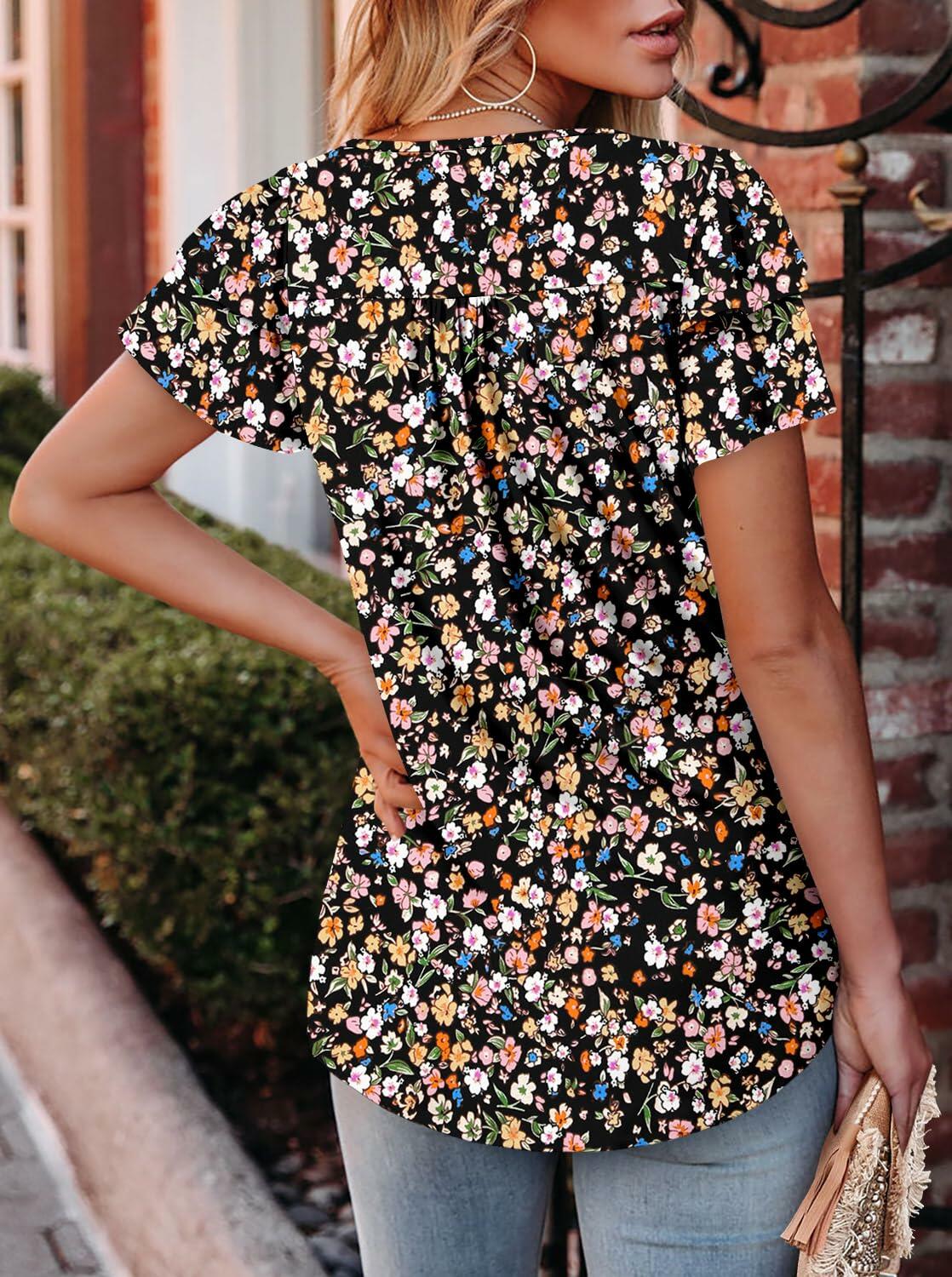 Angerella Ladies Black Floral Bohemian Crew Neck Tee Shirt XL