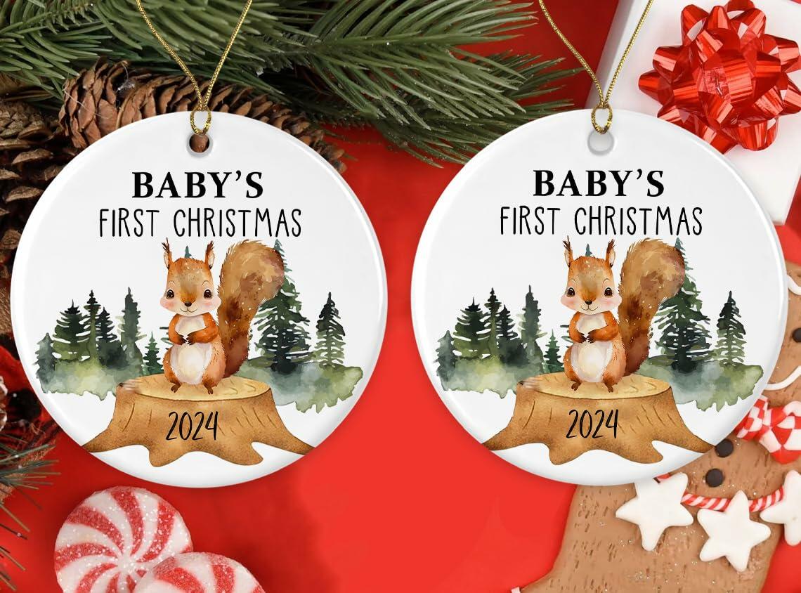 AnhTram97 Squirrel Christmas Ornament 9" White Ceramic Woodland Decor