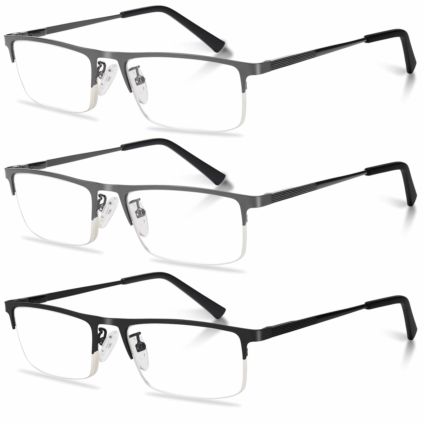 Anourney 3-Pack Men’s Reading Glasses Half Frame Blue Light +3.0 Gray/Black