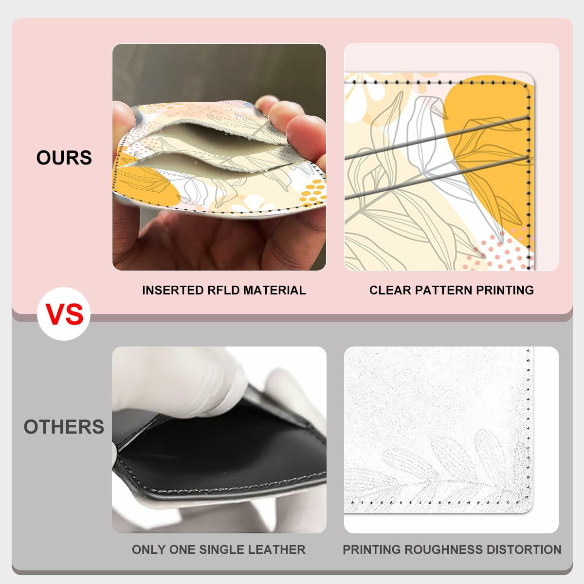 AOPEFNX Card Holder Phone Case Leather Wallet Dual Pocket Abstract Leaf