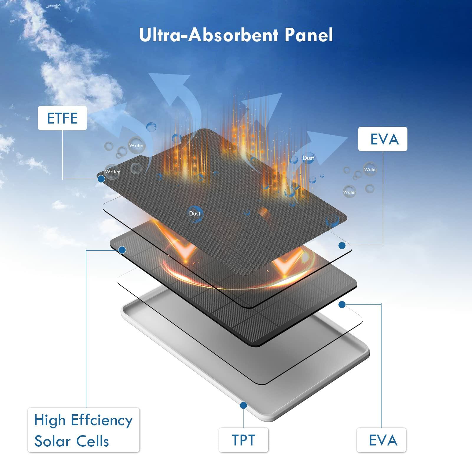 - Higher Conversion Efficiency:The solar panel is made of monocrystalline silicon,which can improve the conversion rate of solar energy. The conversion rate is 20% and let your camera non-stop power supply.