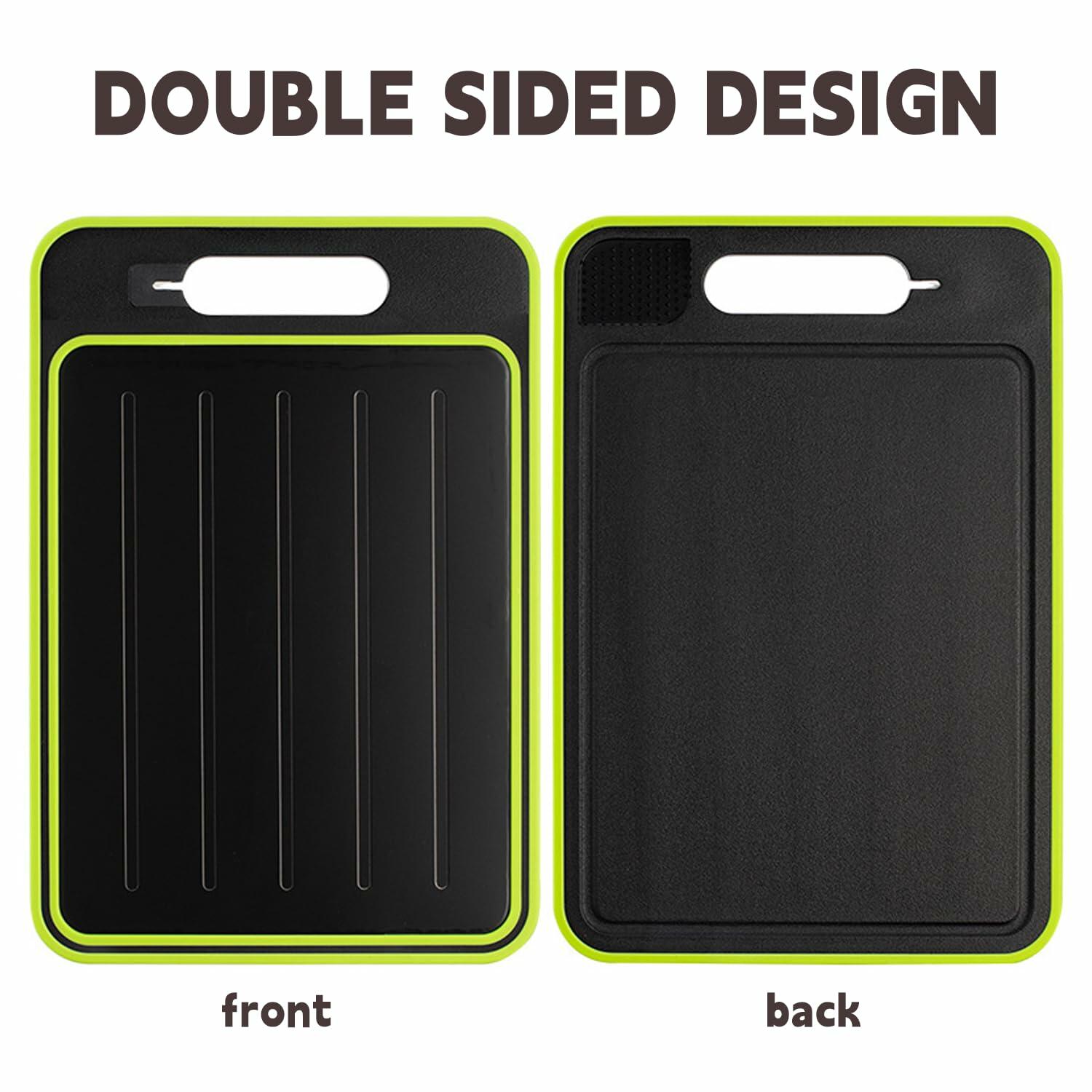 - EASY TO CLEAN:The material on both sides is non-stick,you can rinse it with water to keep it clean or use it in the dishwasher. After cutting meat or vegetables,please clean the cutting board in time and hang it in a dry place.There is a portable carrying handle on the cutting board,easy to carry and hang.